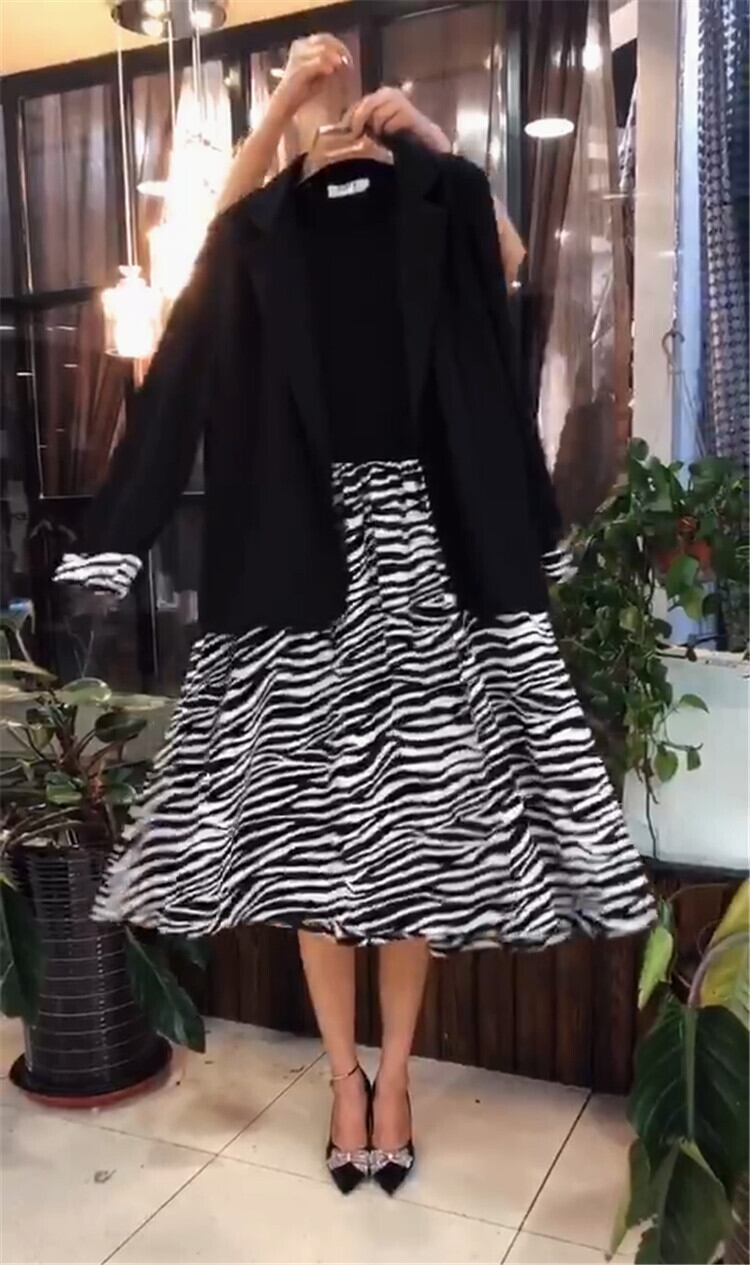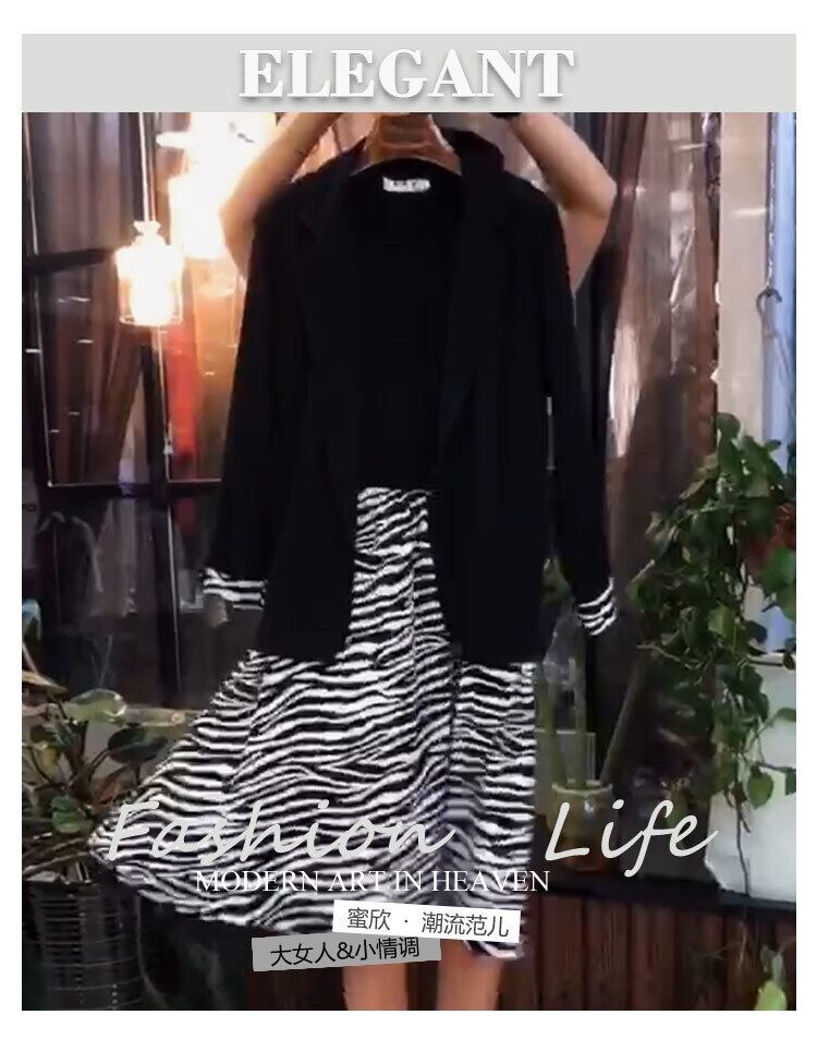 2020年新作ツーピースドレスレディースオータムスーツジャケットルーズカバーミートプラスサイズレディースおなかの脂肪mmスカート ミックスインファッション65781413114