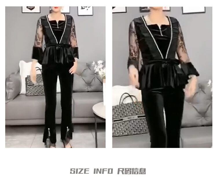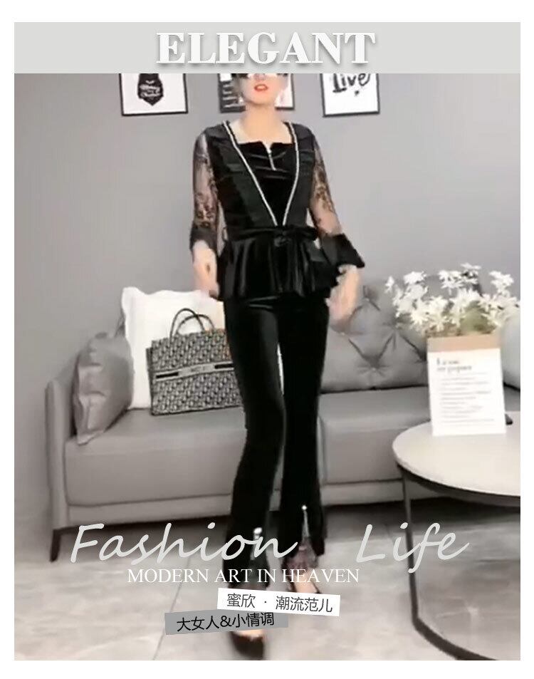 2020新しいファットmmスリミングレースウエストツーピーススーツウエスタンスタイルの女性のズボンのファッションプラスサイズの女性の秋 ミックスインファッション21049877237