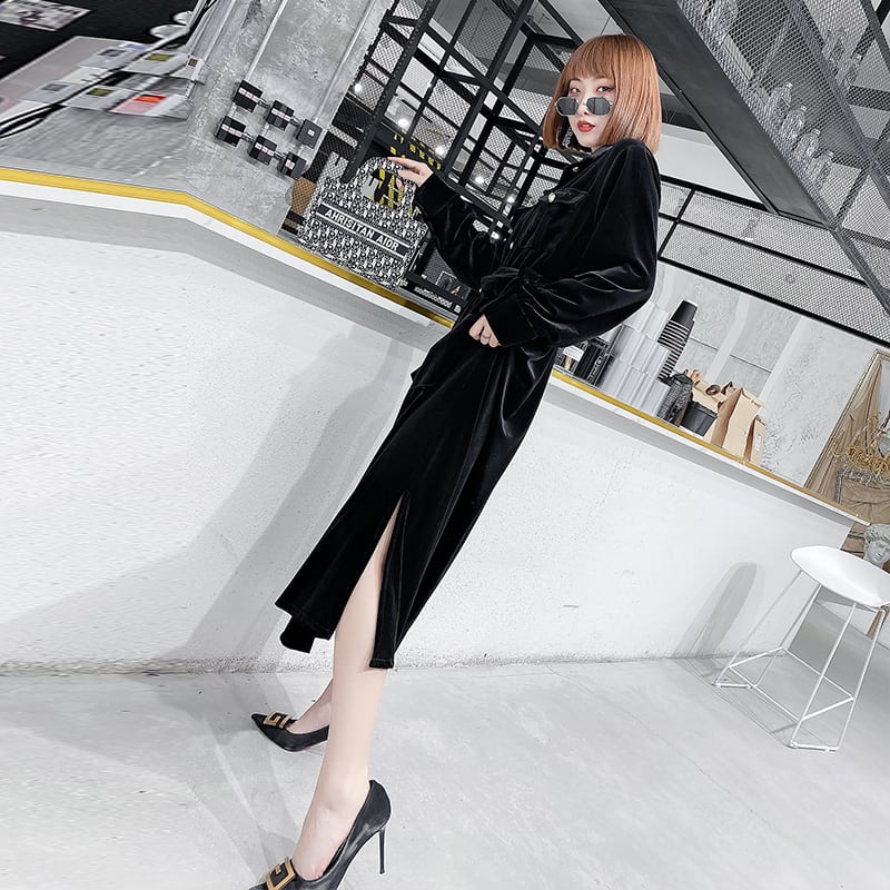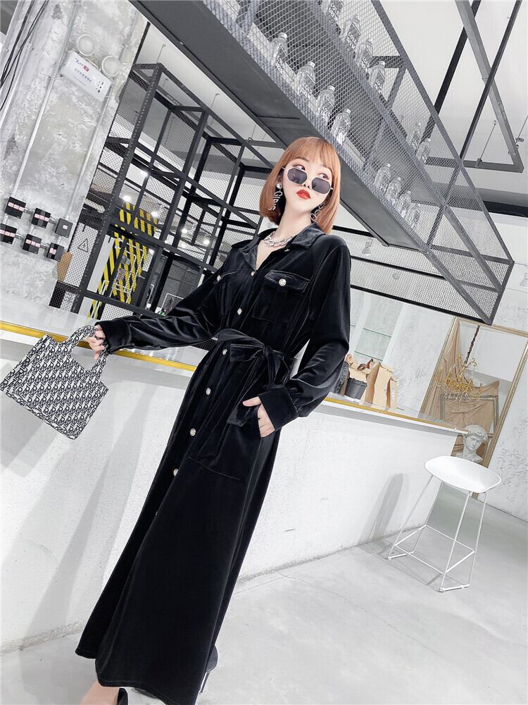 プラスサイズの女性の太った姉妹mm年齢を減らすミドル丈ベルトドレス秋の新しいゆったりとした薄いスカート ミックスインファッション14285764098