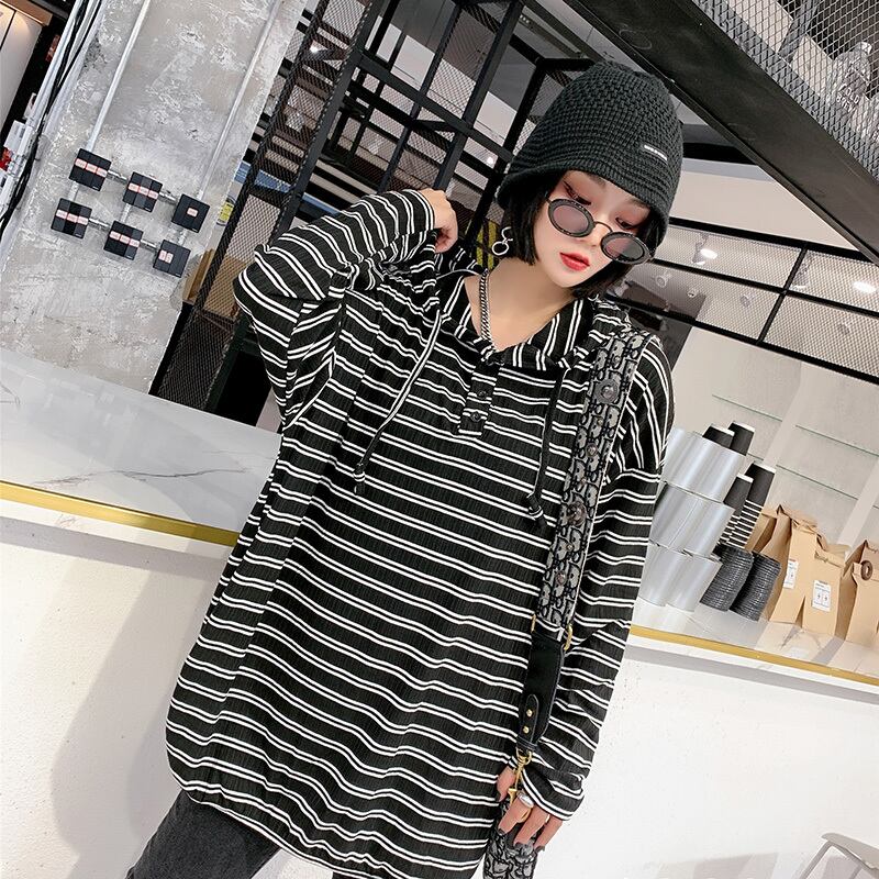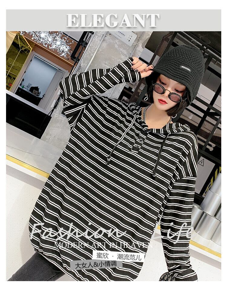 プラスサイズの女性のスリムな秋の服ルーズブラウス脂肪mm太った姉妹スリム長袖ストライプTシャツ女性カバー腹 ミックスインファッション74759139012
