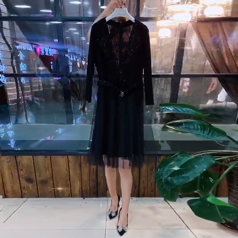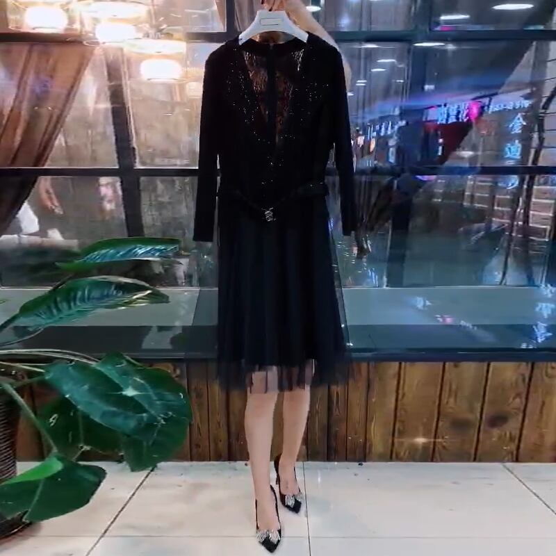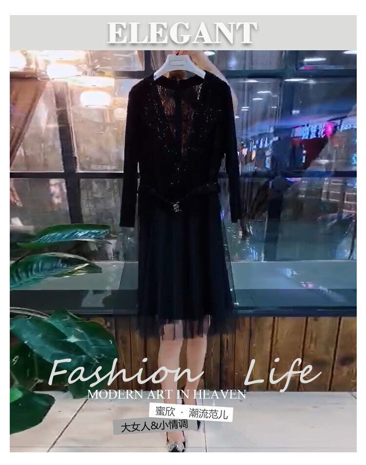 2020年秋新しいラージサイズウエストウエストスリミングドレスファットシスターmmウエスタンスタイルの年齢を減らすレーススカート ミックスインファッション78594633290