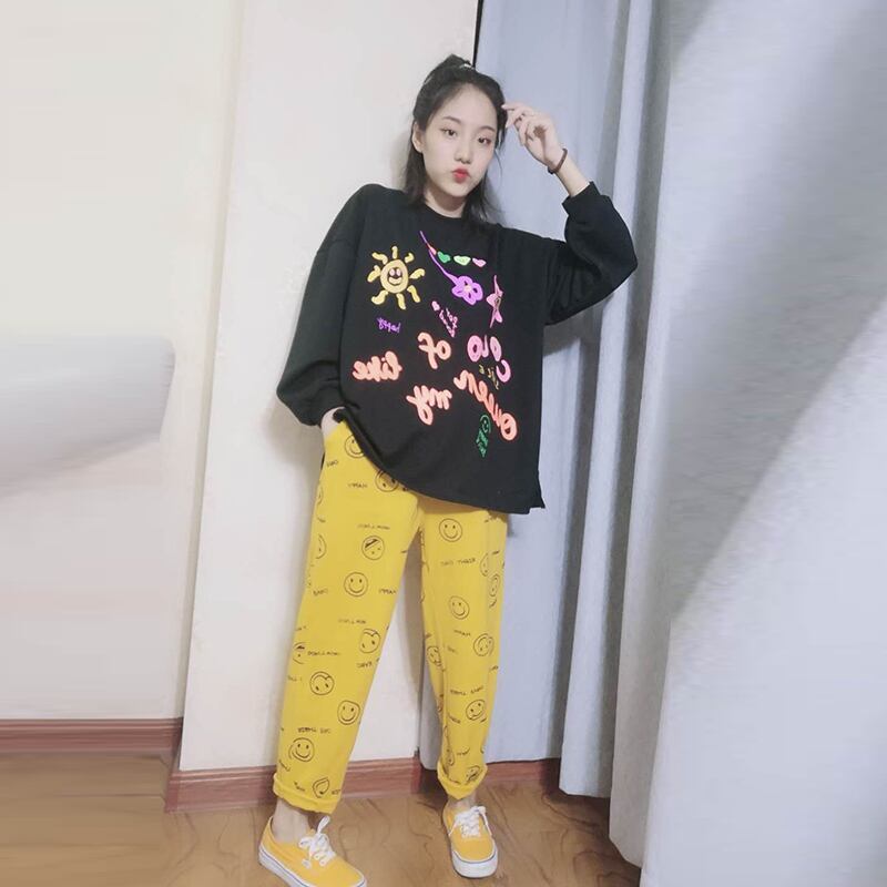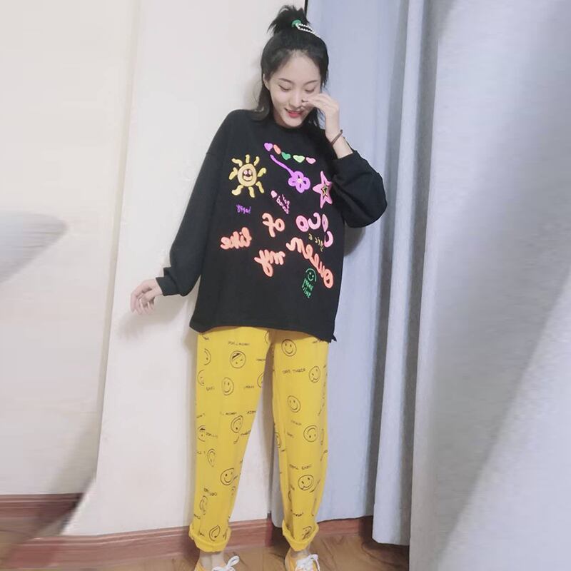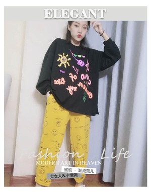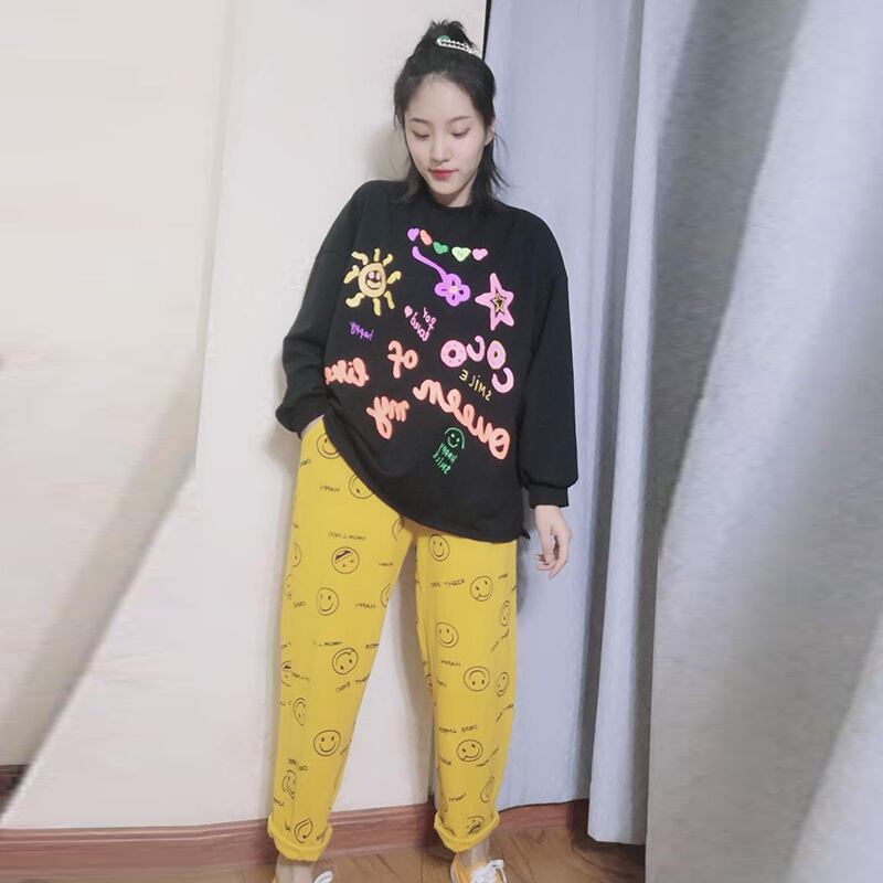 長袖Tシャツ女性の2020年秋新しいファットmmカジュアルパンツバージョンルーズで薄い漫画のビッグサイズのシャツ ミックスインファッション92303622458