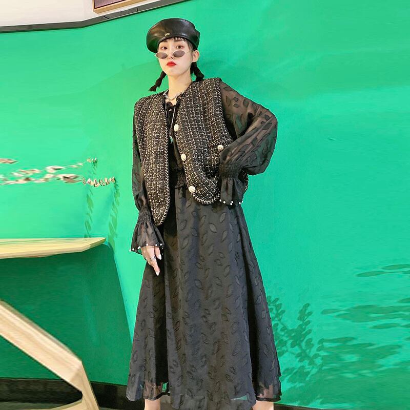 ファットプラスサイズの女性のチョッキドレスファットmmスリム気質ウエストは薄い大学スタイルの女性のスカートツーピーススーツでした ミックスインファッション72176992540