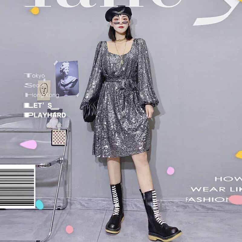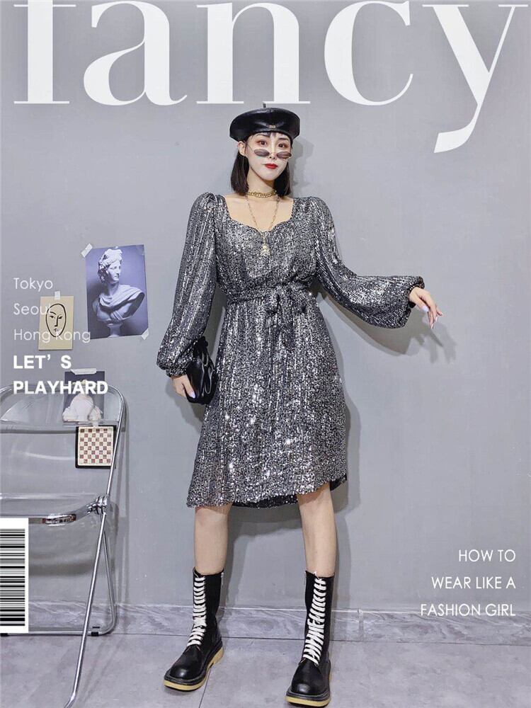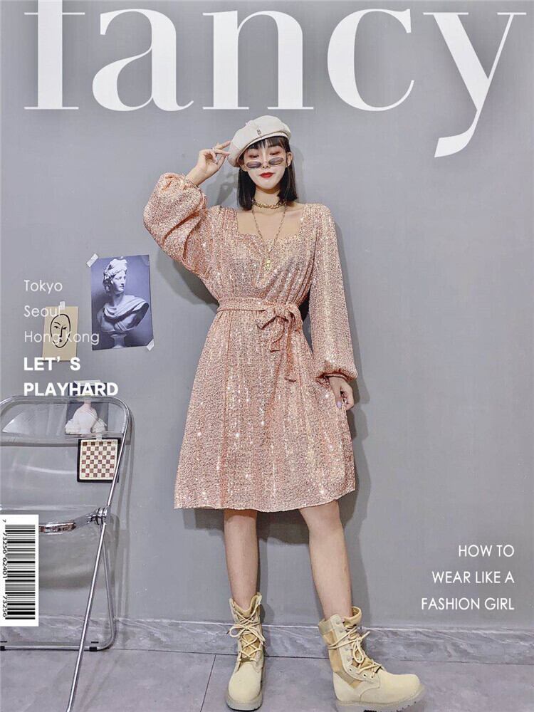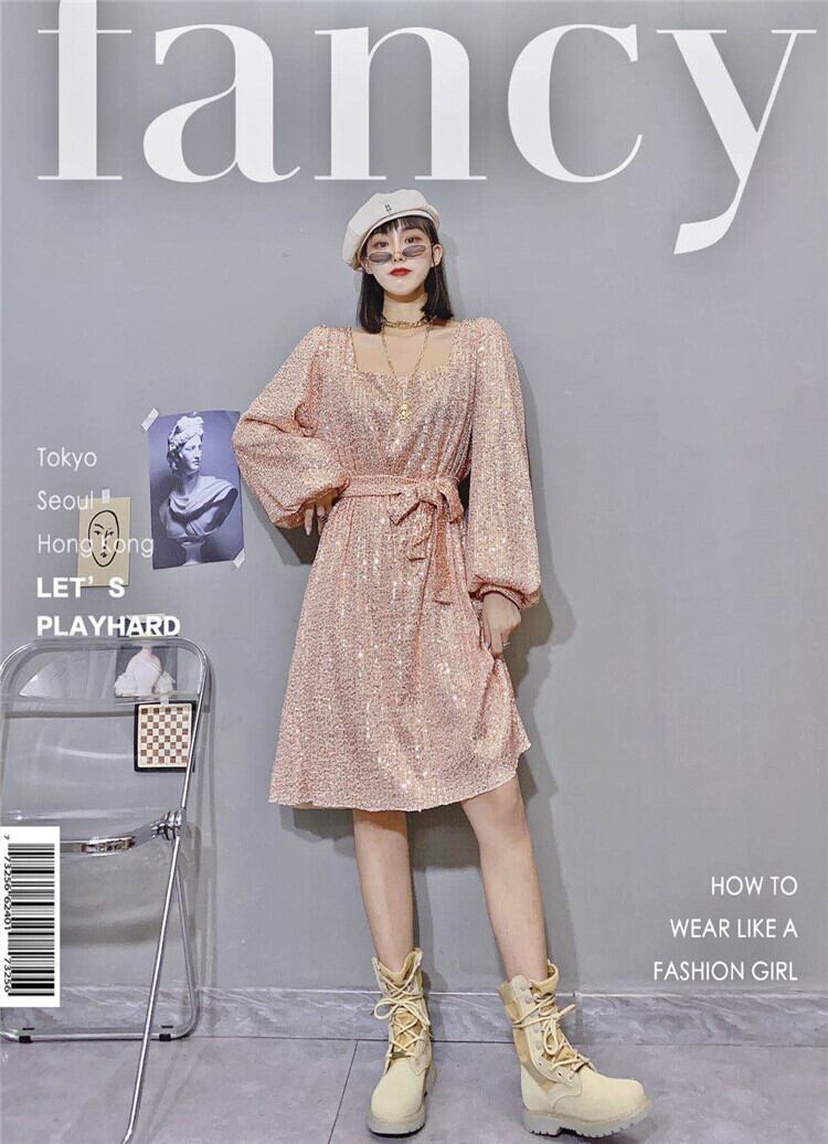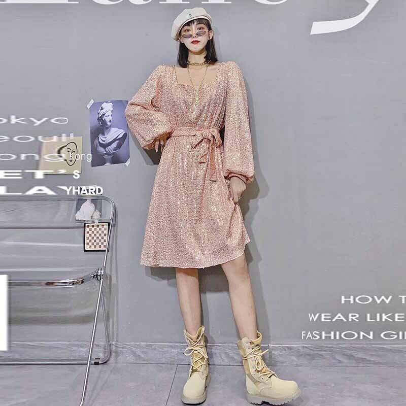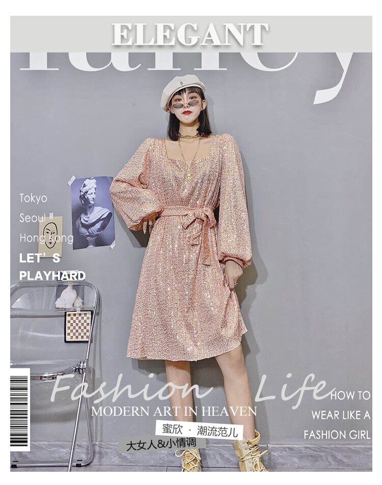 プラスサイズの女性の秋の服、太った女性、洋風ベルトスパンコールスカート、2020年の新しい太った姉妹の年齢削減ドレス ミックスインファッション52336657726