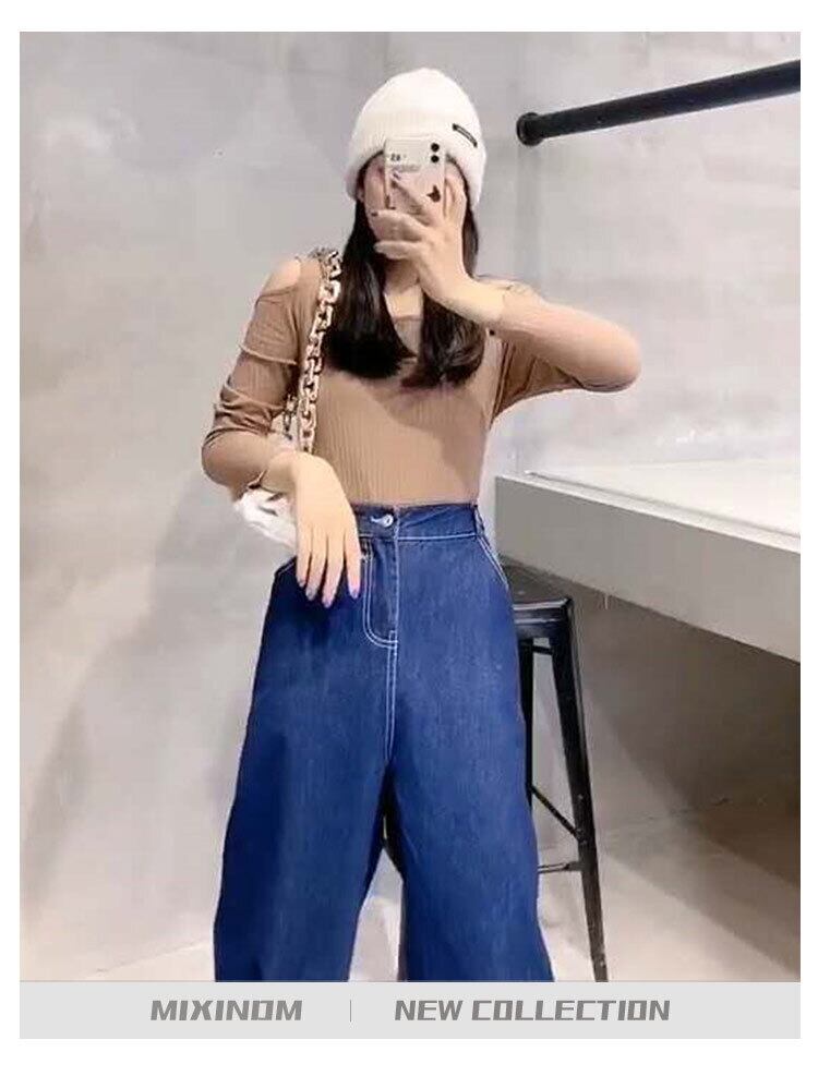 プラスファットプラスサイズ長袖Tシャツ女性秋着ストラップレスルーズファットシスターmmジーンズカバー腹200kgトップ ミックスインファッション57764208572