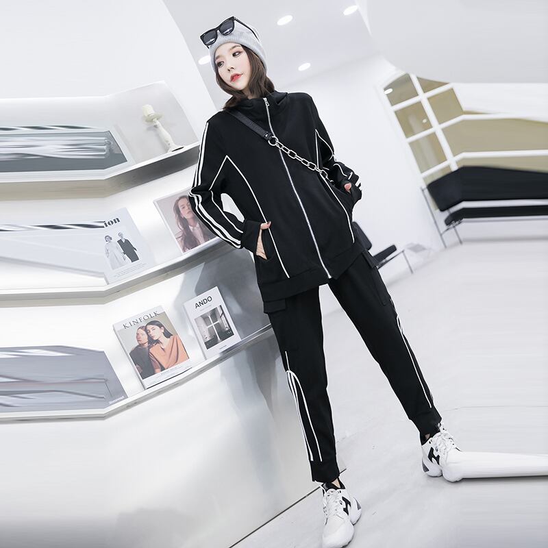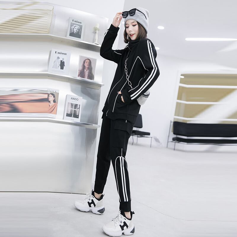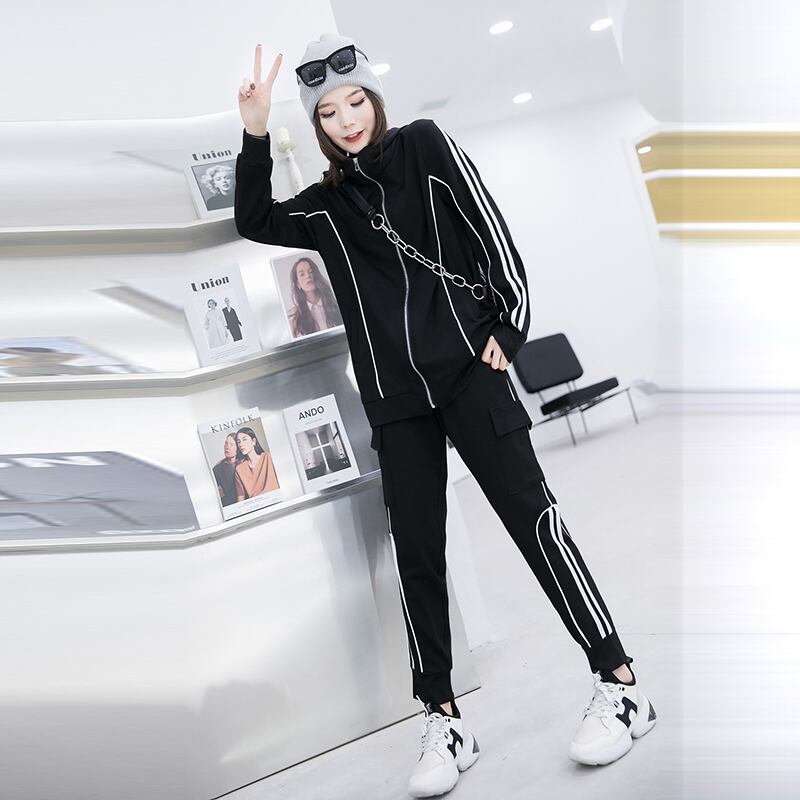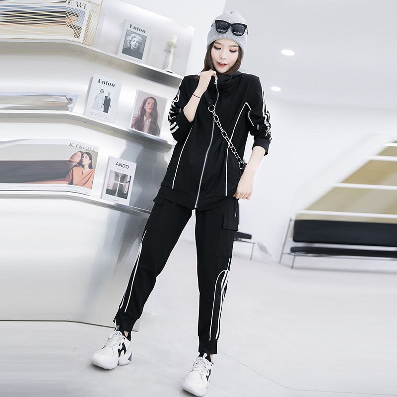 2020年秋プラスサイズレディースファッションカジュアルスポーツジャケットファッションスモールトールウエストスリムパンツスーツレディース ミックスインファッション61315138180