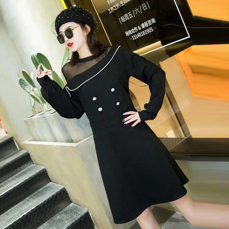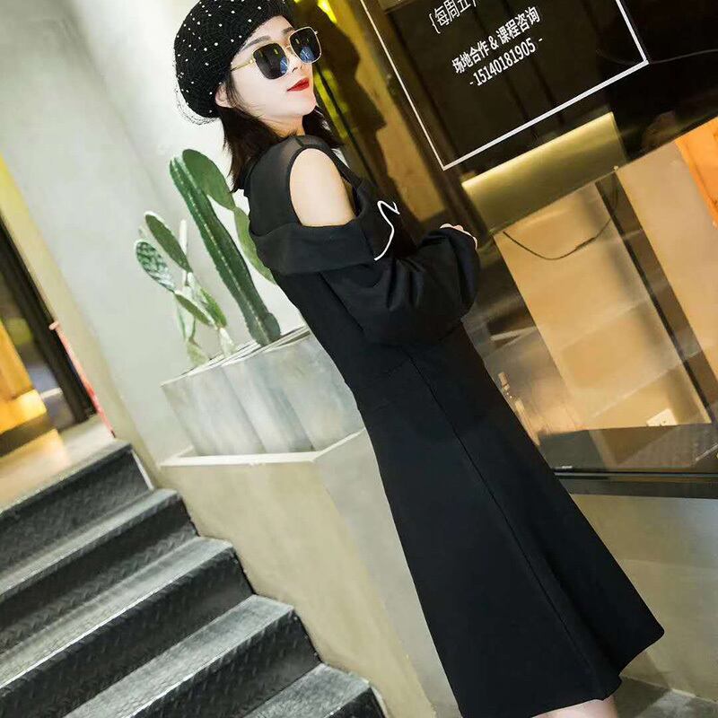 プラスサイズの女性の2020年秋の新しいスタイルのファットシスター、ウエスタンスタイル、薄くて肉付きの良いベールドレス、蓮の葉のオフショルダードレス ミックスインファッション74996323409