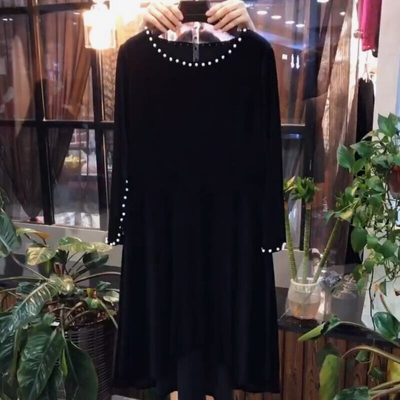 ファッションプラスサイズのビーズの襟プラスサイズの婦人服、脂肪MMは薄く、肉と脂肪を覆い、秋の新しいスタイルのドレス ミックスインファッション98783350723