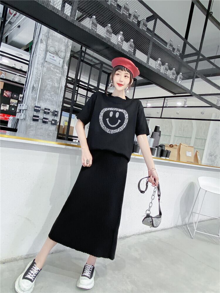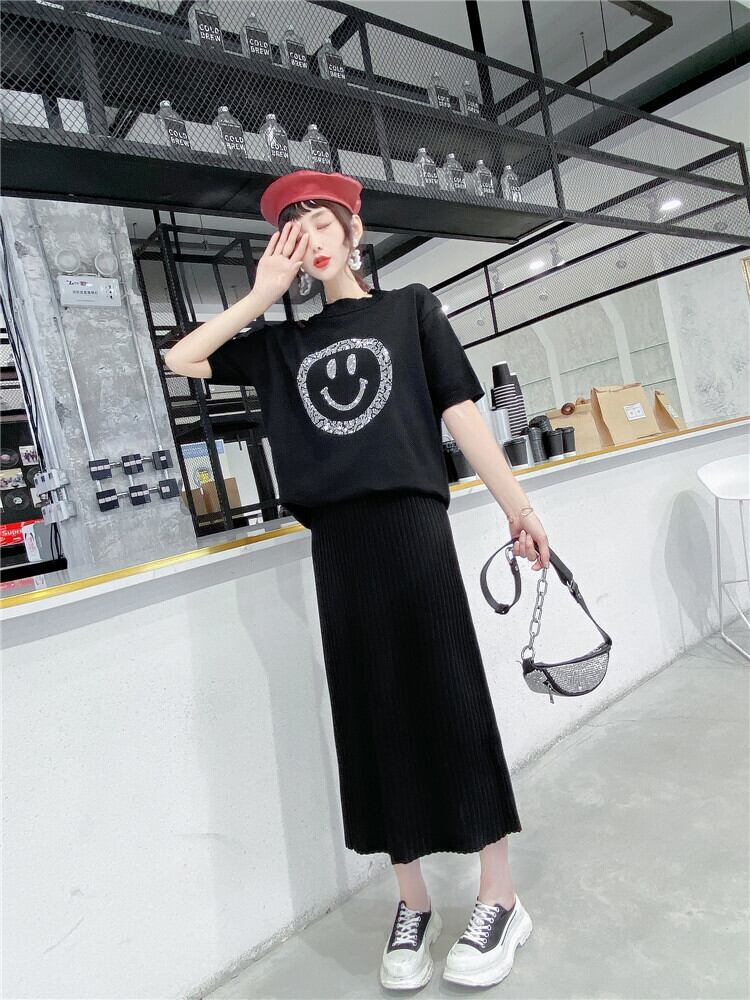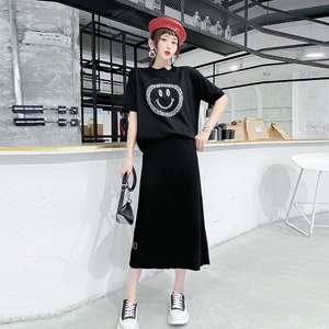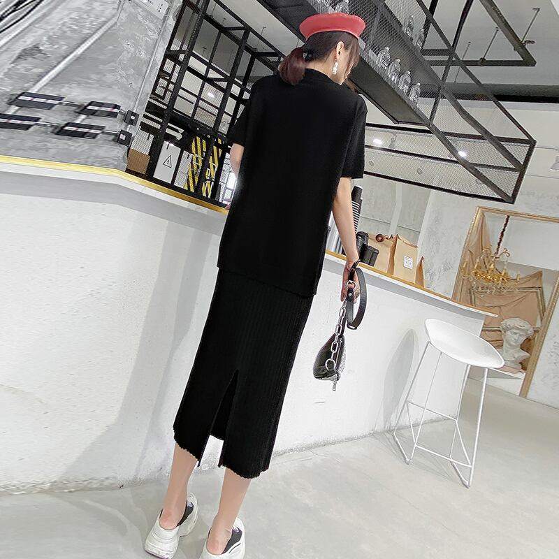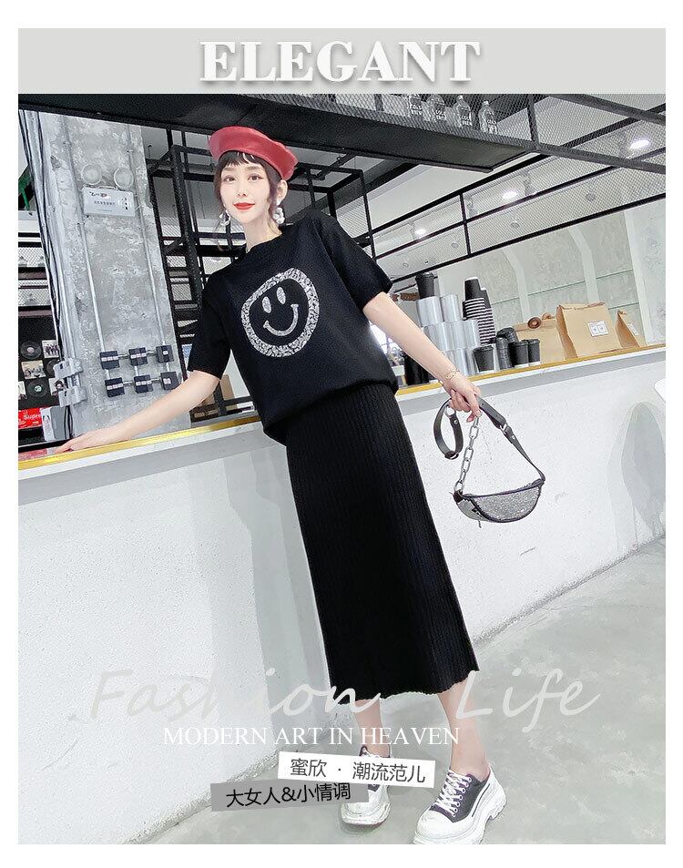 プラスサイズの女性の太った姉妹2020年秋の新しい洋風Tシャツ年齢を減らし、肉を覆い、薄い陰謀のニットスカートを見せます ミックスインファッション161180722