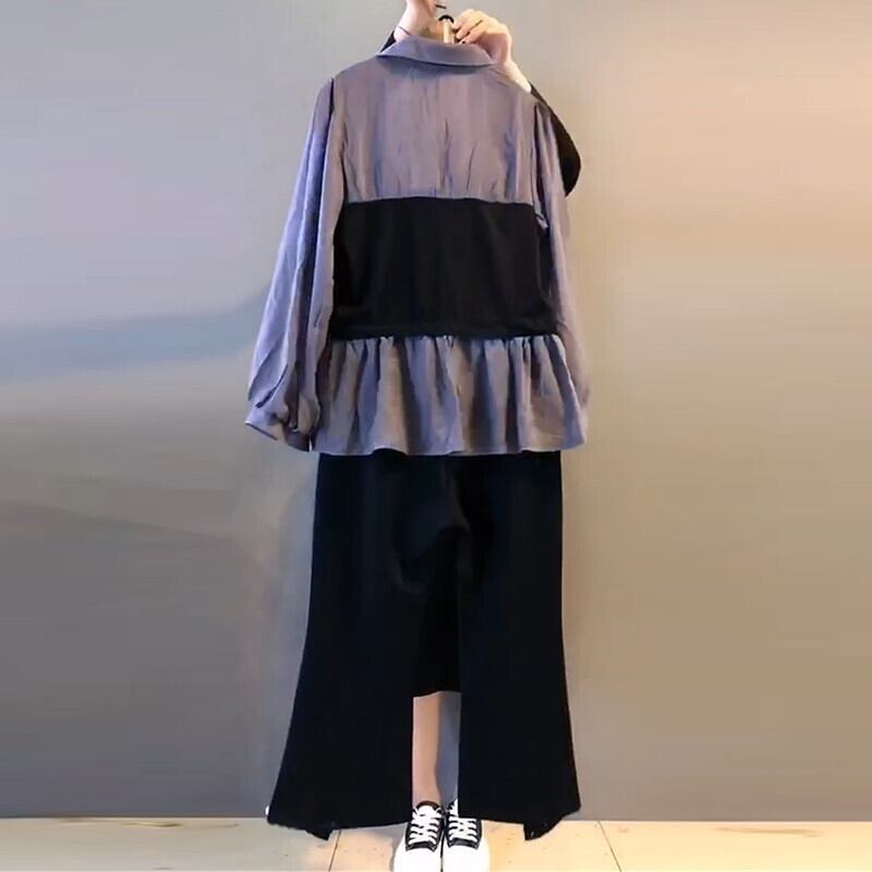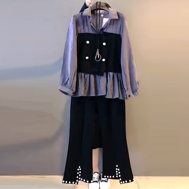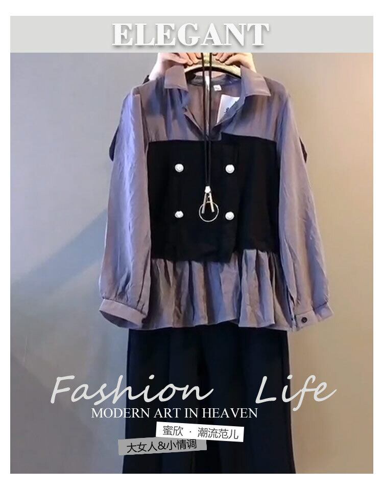 プラスサイズの女性の太ったmmフレンチスキーム長袖bm秋のコートブラウス太った姉妹Tシャツベルボトムパンツ ミックスインファッション31239830203