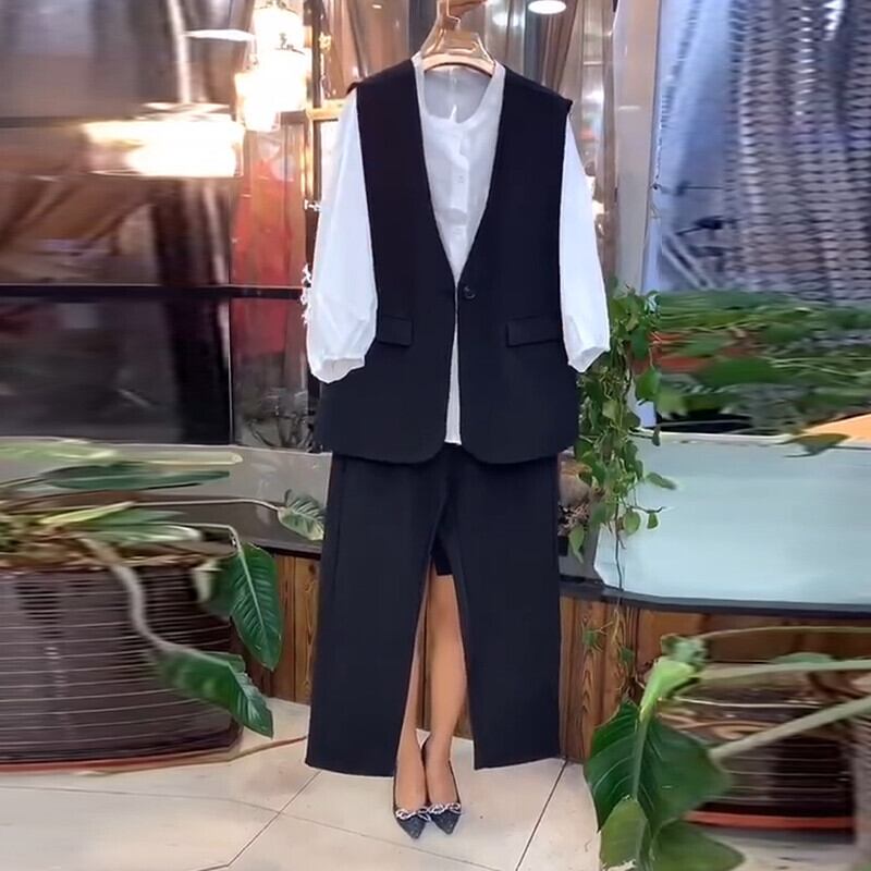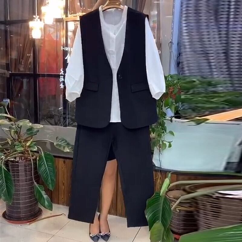 ラージサイズファットmmスキームスリミングスーツ女性秋ベストトップシャツカジュアル女性パンツスリーピーススーツ年齢を減らす ミックスインファッション78488619232