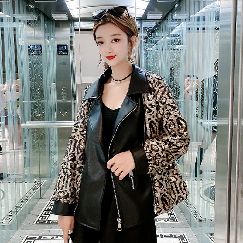 ラージサイズの女性用ルーズ、シン、ベリーカバーミートジャケット、オータムウェア、ファットmm、ウエスタンスタイル、ヒョウ柄デザイン、レザージャケットファッション ミックスインファッション38932211736
