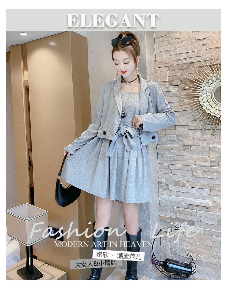 プラスサイズの婦人服2020新しい秋ファットシスター年齢削減と薄いアウタースーツドレスツーピースウエスタンスタイルの秋 ミックスインファッション26951147579