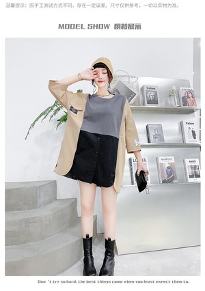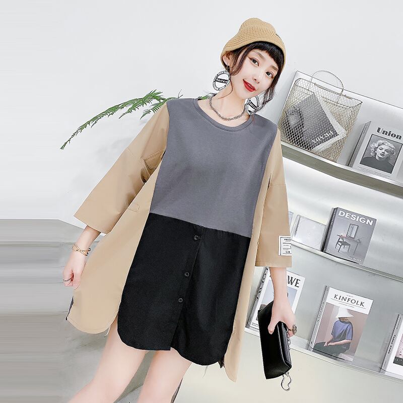 ロングファットシスタープラスサイズ婦人服カラーマッチングのトップ秋バージョンTシャツ洋風のマシーンシャツデザインセンス ミックスインファッション62234744526