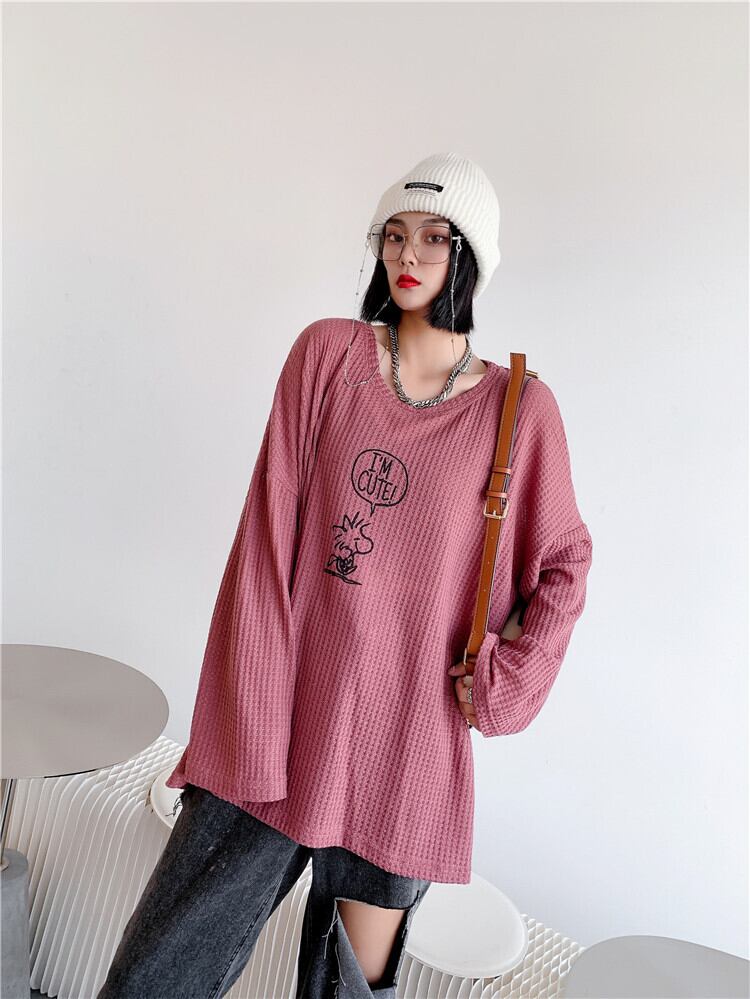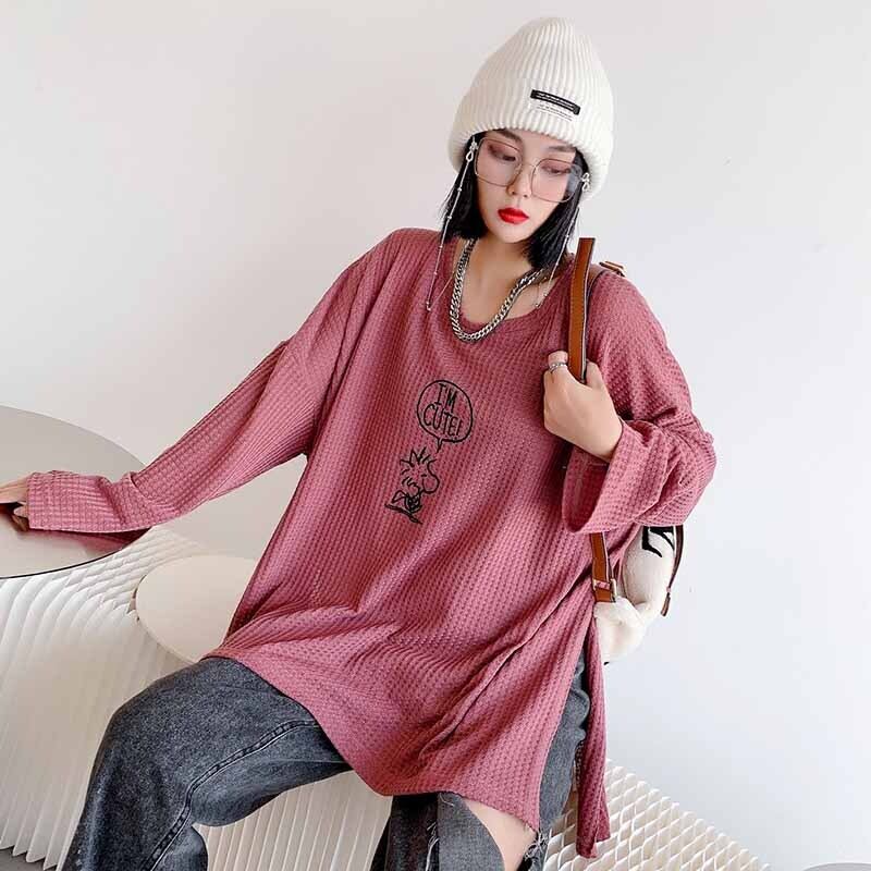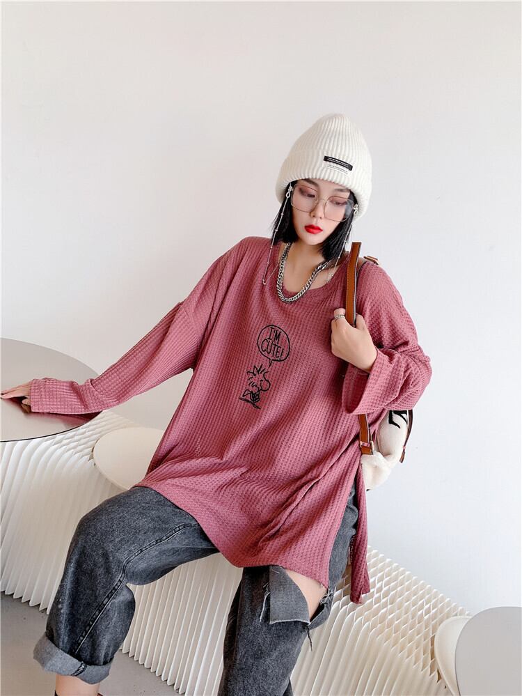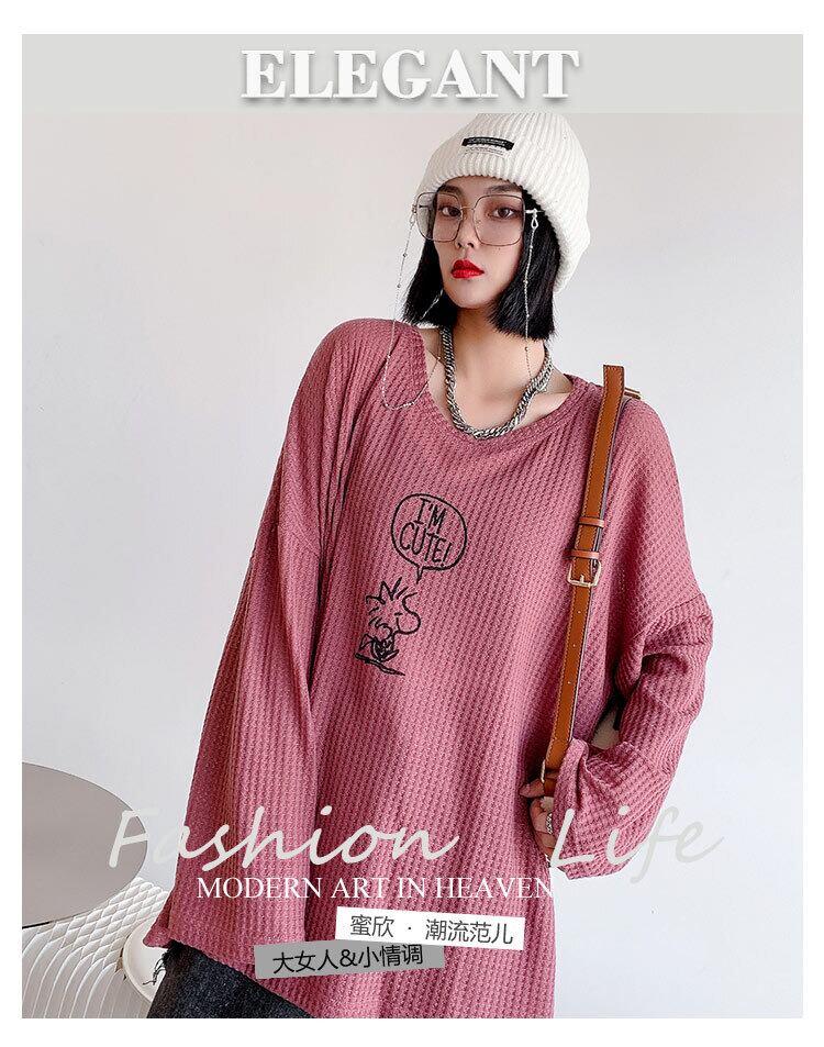 特大サイズの女性用220kgファットmmTシャツ、長袖の秋のルーズ、薄い、お腹を覆うトップ、そして余暇を増やすためのファット ミックスインファッション89576797135