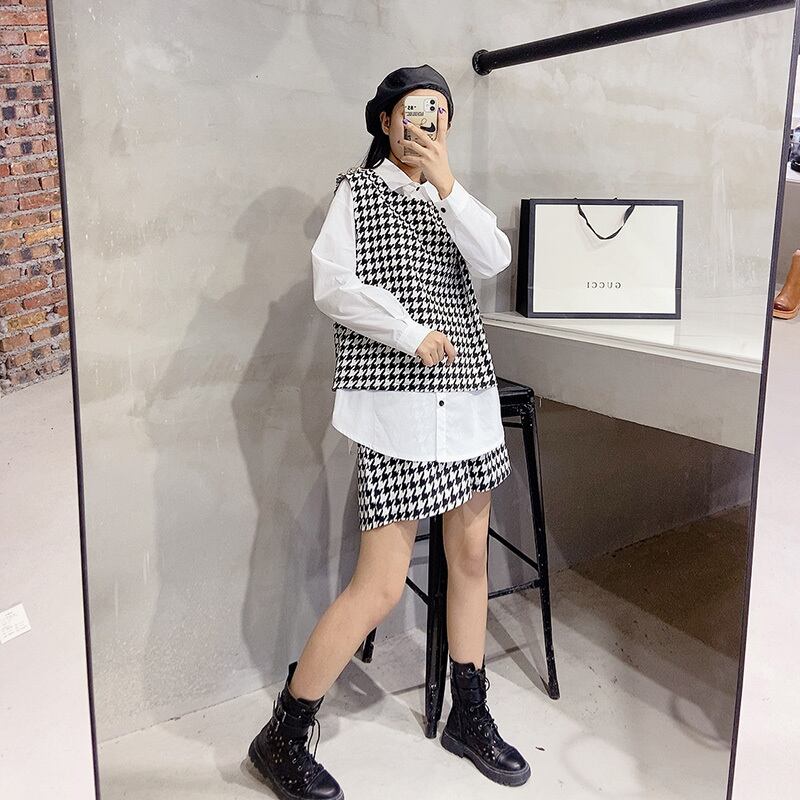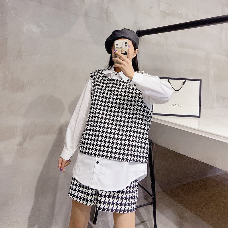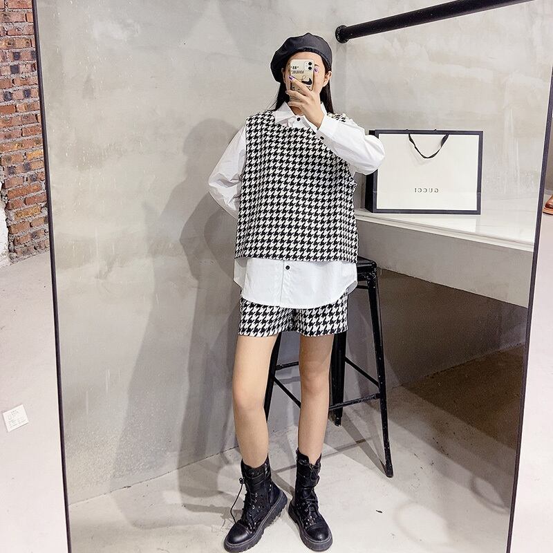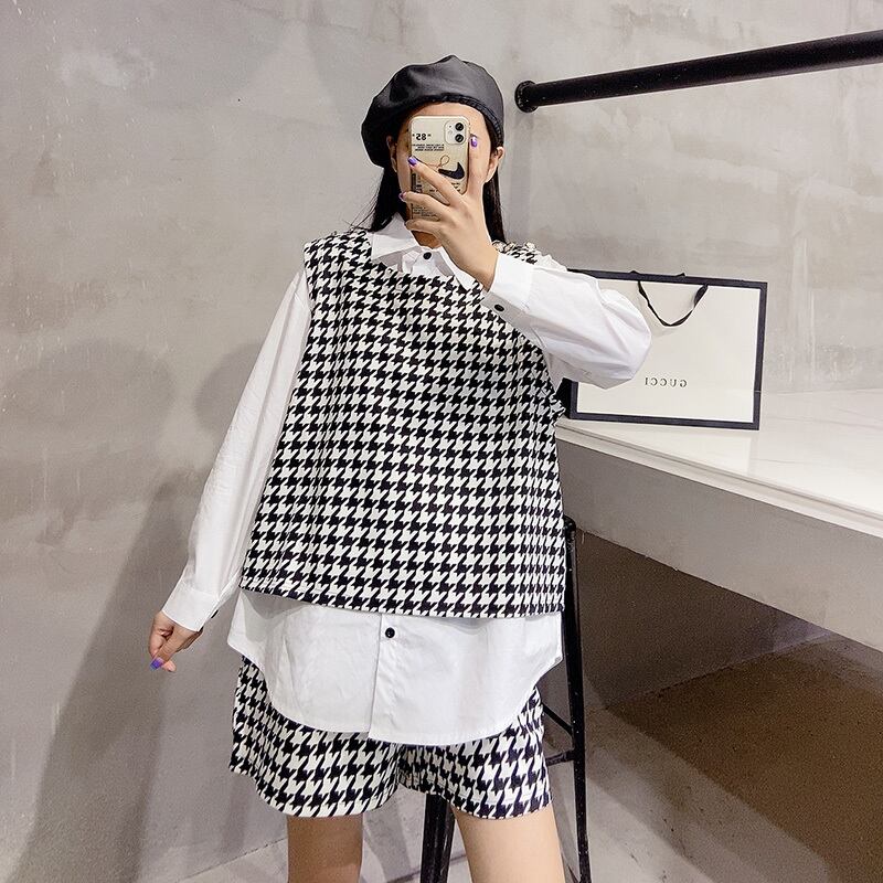 スーツの女性2020年秋新しいファッションバージョンプラスサイズの女性の長袖千鳥格子ショーツスリーピースファッショントレンド ミックスインファッション53594901199