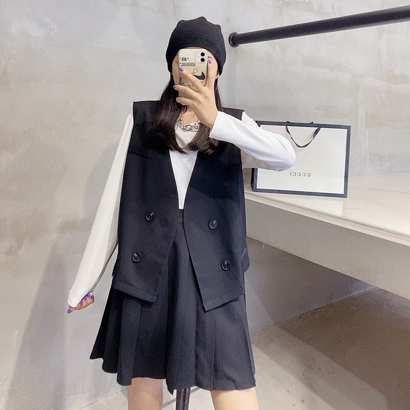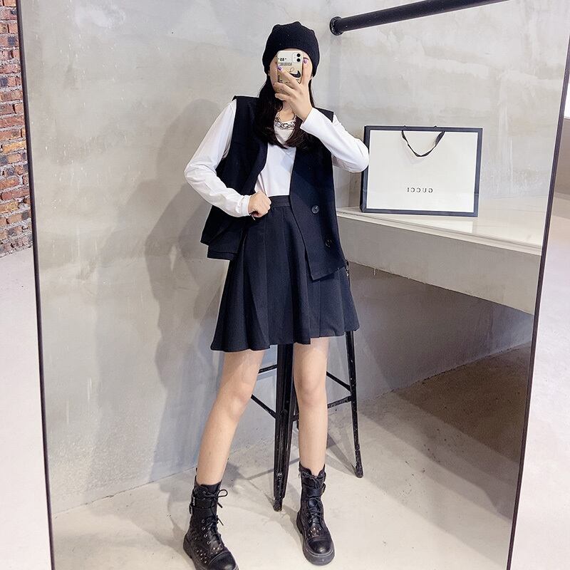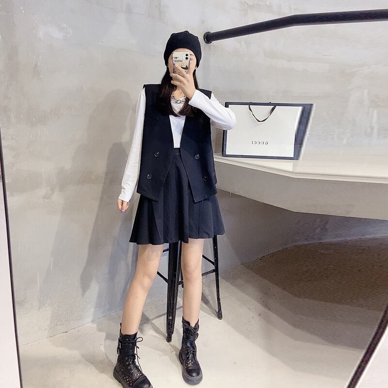 プラスサイズの女性の2020年秋新しい太った姉妹は薄く見え、腹を隠し、年齢を減らし、プリーツスカート、スリーピーススーツ ミックスインファッション26568340155