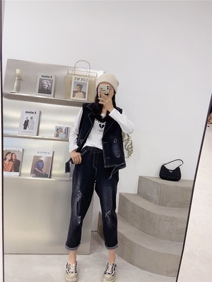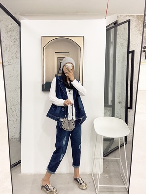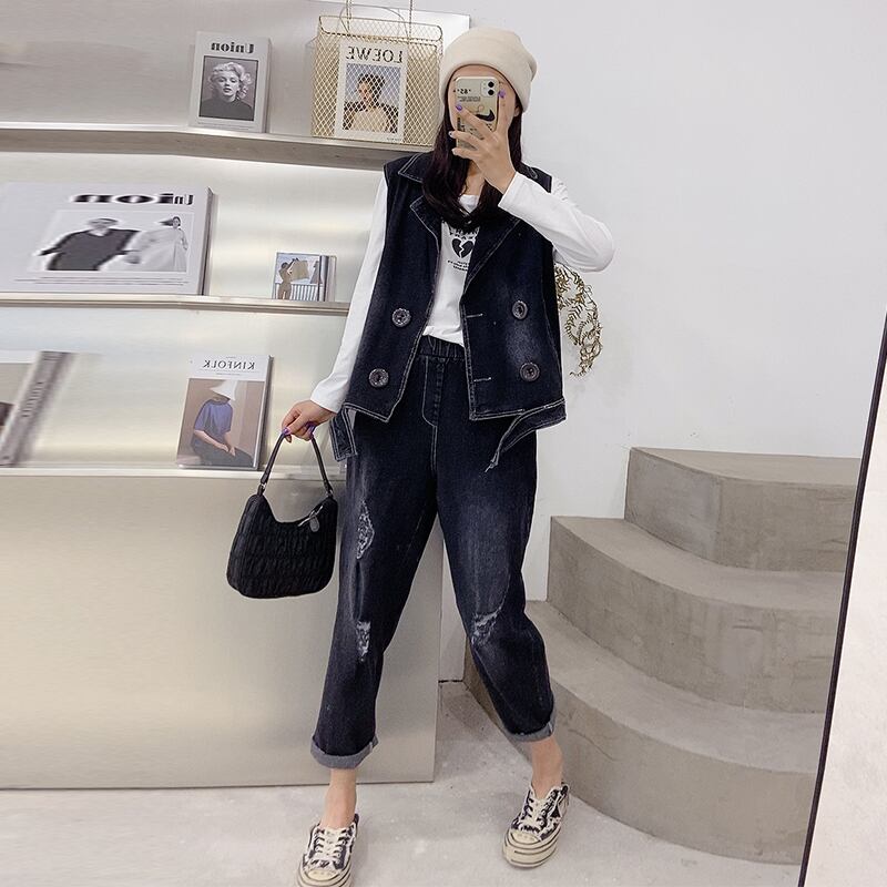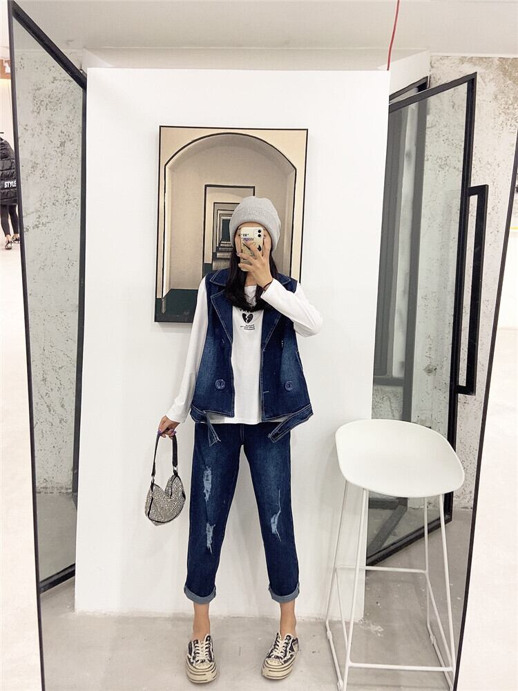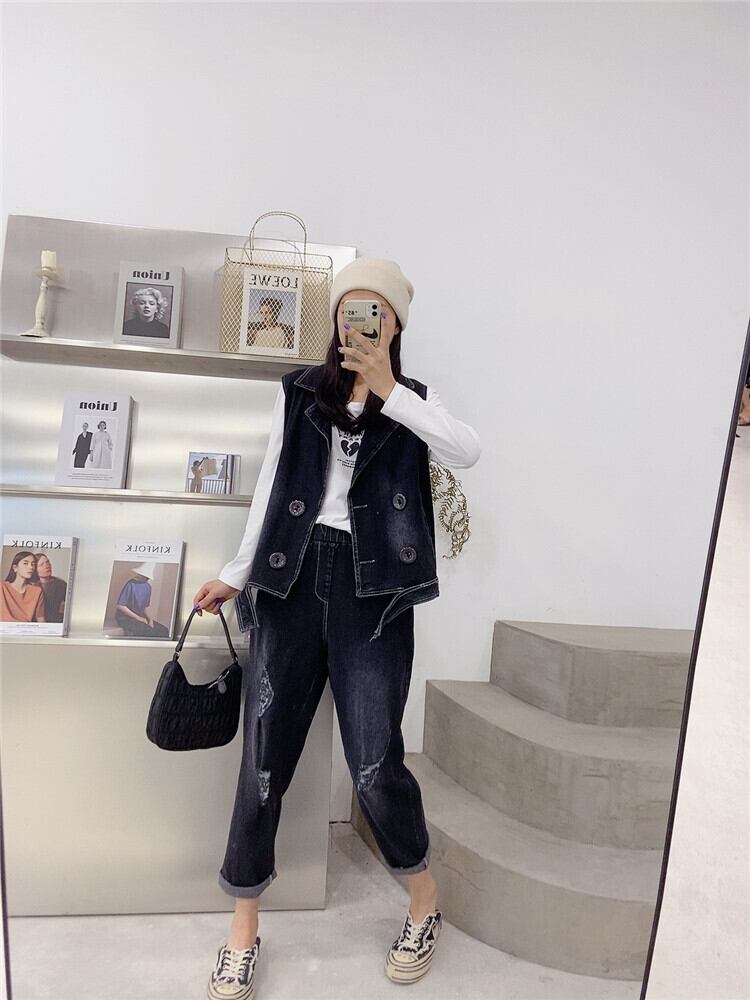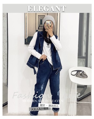 プラスサイズの女性の太ったmmのチョッキスーツは薄い秋ルーズルーズトップスは腹をカバーするために年齢を減らしますウエスタンスタイルのジーンズファッション ミックスインファッション47532700782