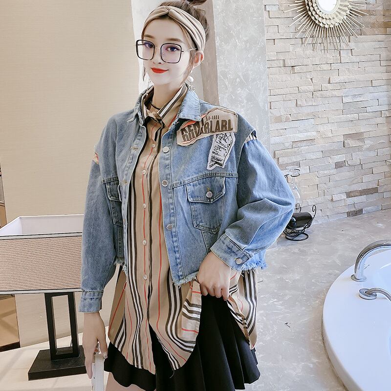 2020年秋新作ビッグサイズファットシスターは薄くて若く、肉をカバー、ツーピースデニムジャケットチェックシャツ女性トレンド ミックスインファッション28327739949