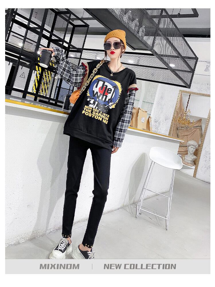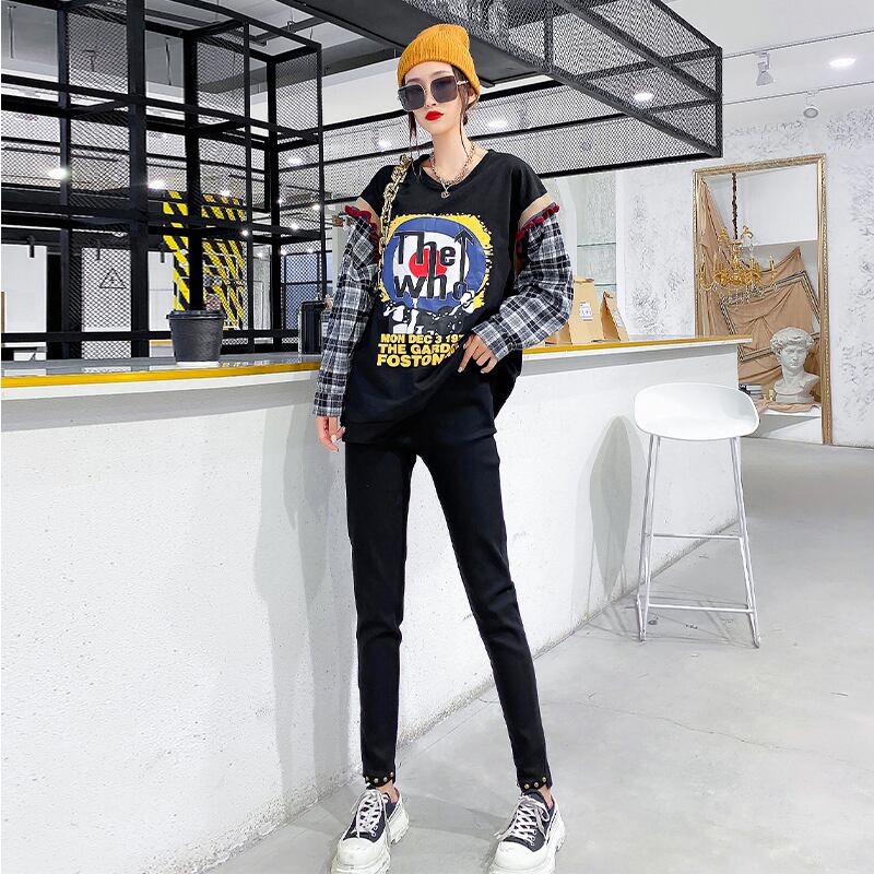 大きいサイズの女性のファッショナブルな西洋スタイルの長袖の女性のトップタイドTシャツは、太った姉妹を増やすためにルーズプラスファットmm文字200 kg ミックスインファッション17033906487