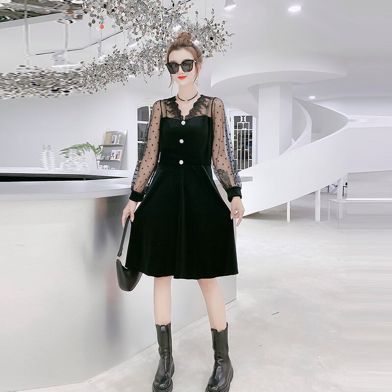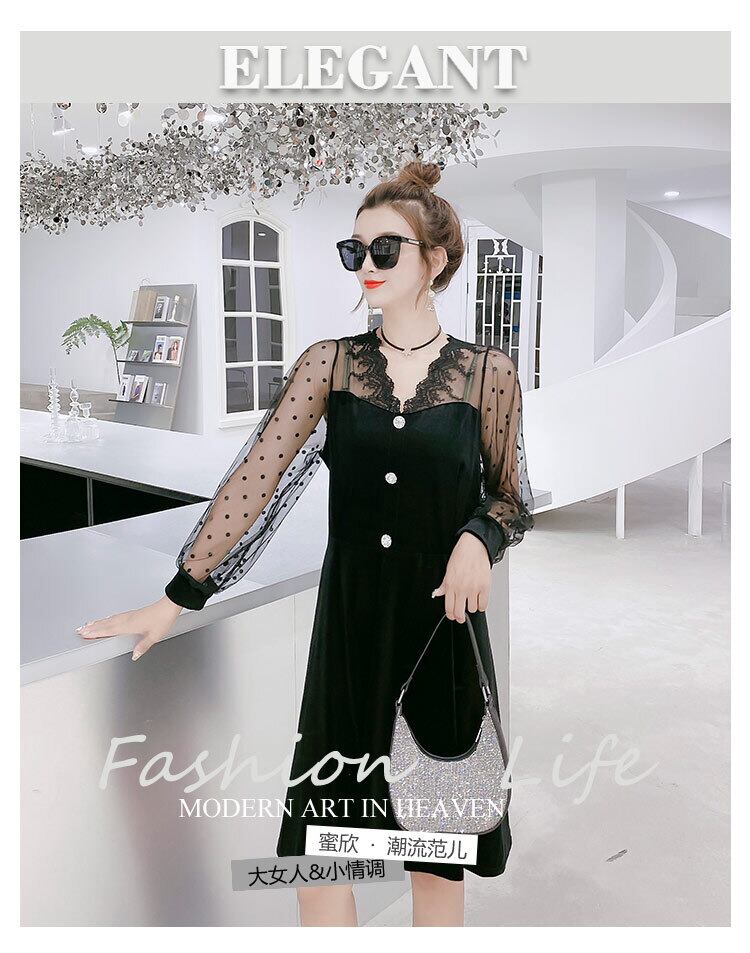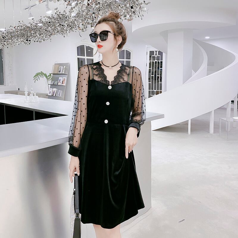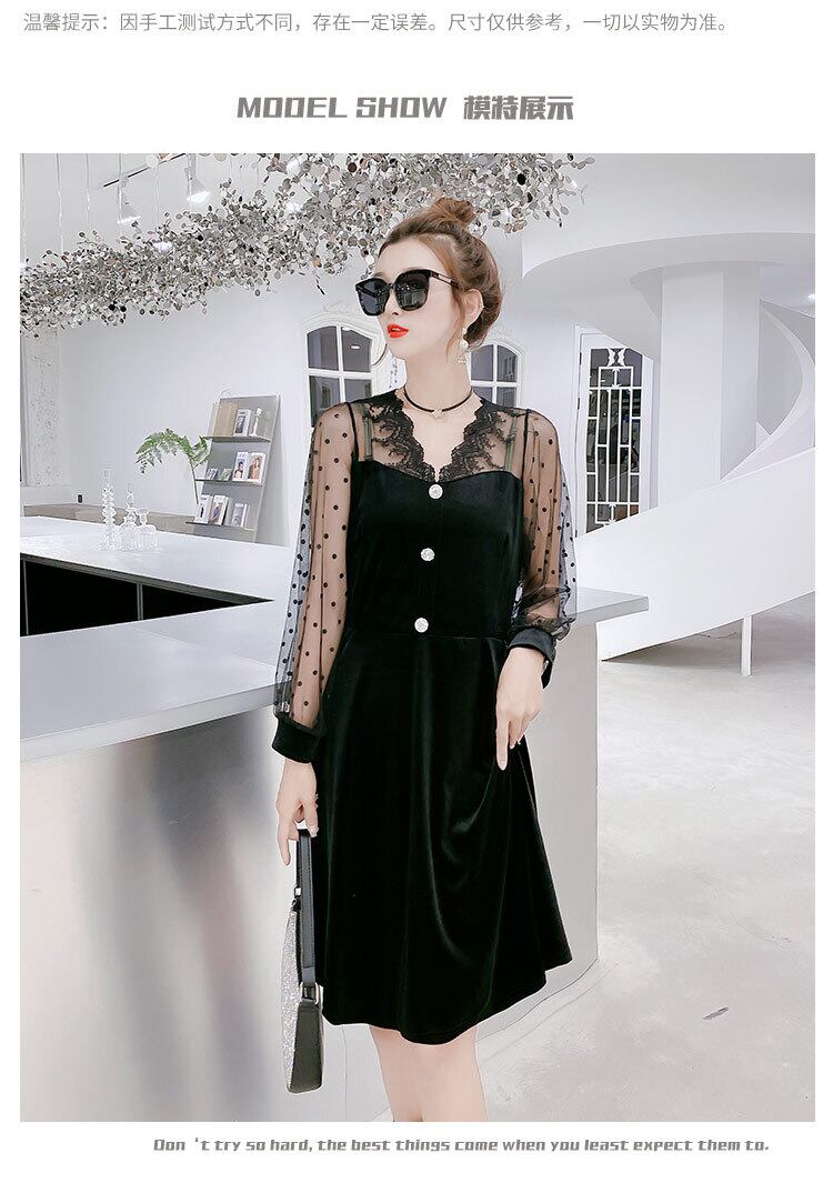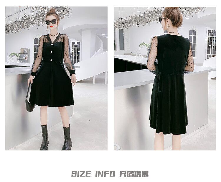 ベルベットウエストドレス2020秋新しいプラスサイズの女性の脂肪mm200キャティカバー腹は薄いロングスカートの気質を明らかにします ミックスインファッション64733775008