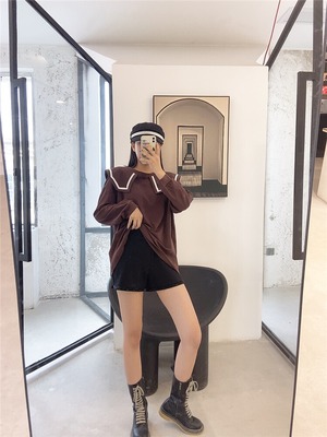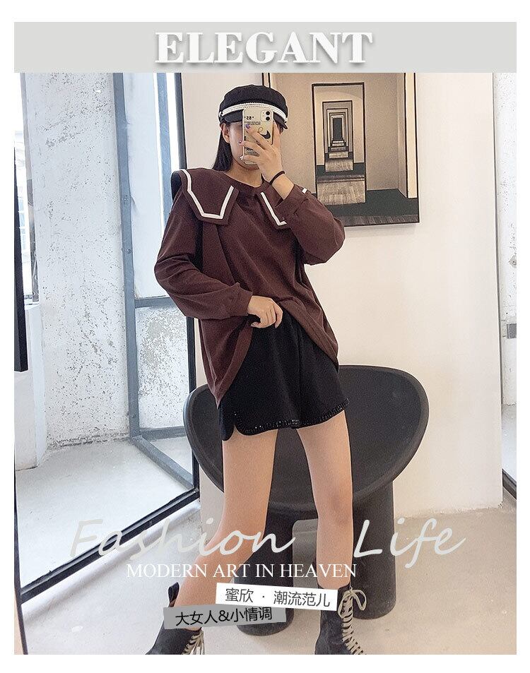 ルーズミドル丈長袖Tシャツファットシスターmmプラスサイズレディース2020秋新作ショーツカバーベリートップ ミックスインファッション28418734542