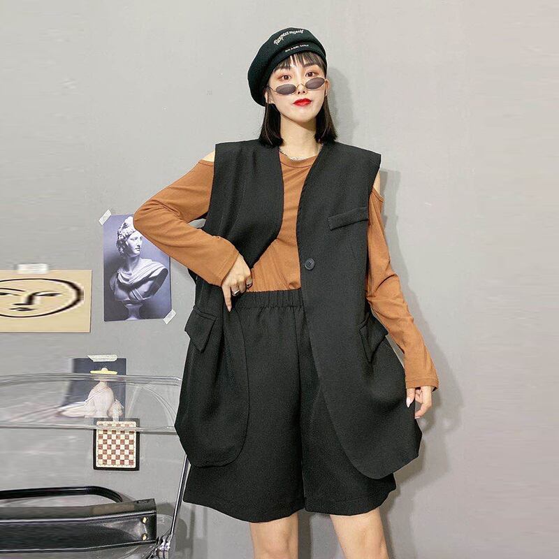プラスサイズの女性の2020年秋の新しい太った姉妹は薄く見える、洋風のTシャツドレスとベスト ミックスインファッション20433633000