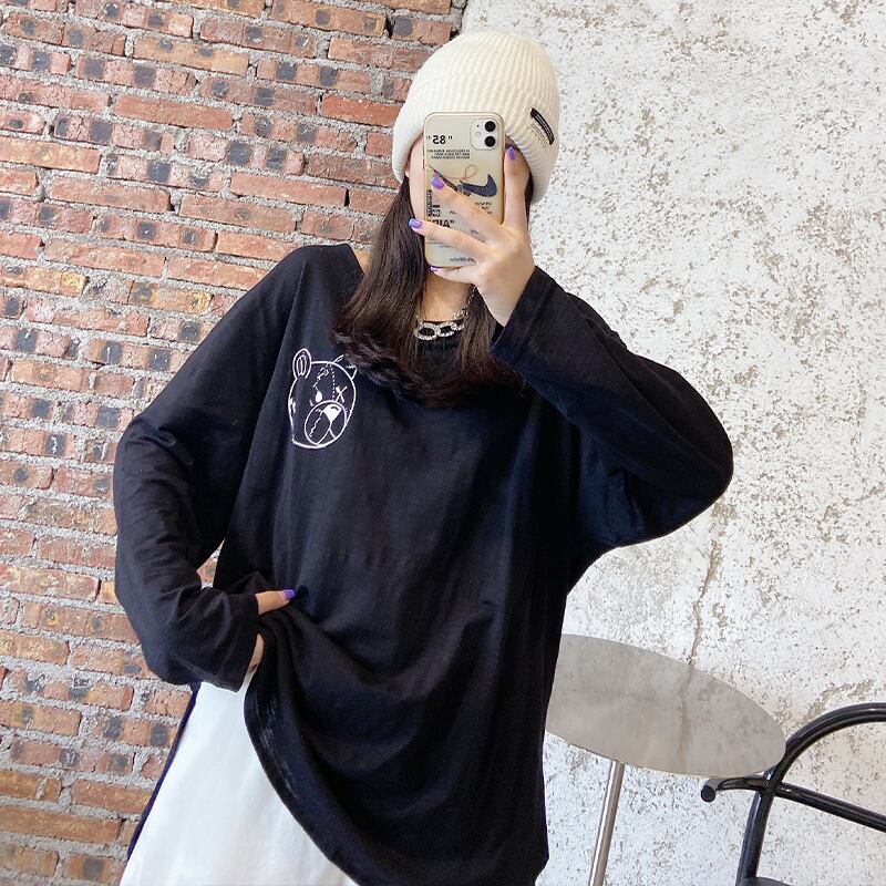 プラスサイズの婦人服2020秋新しい太った姉妹ルーズベリーカバーシャツ薄い漫画Tシャツボトミングシャツ ミックスインファッション30567553679