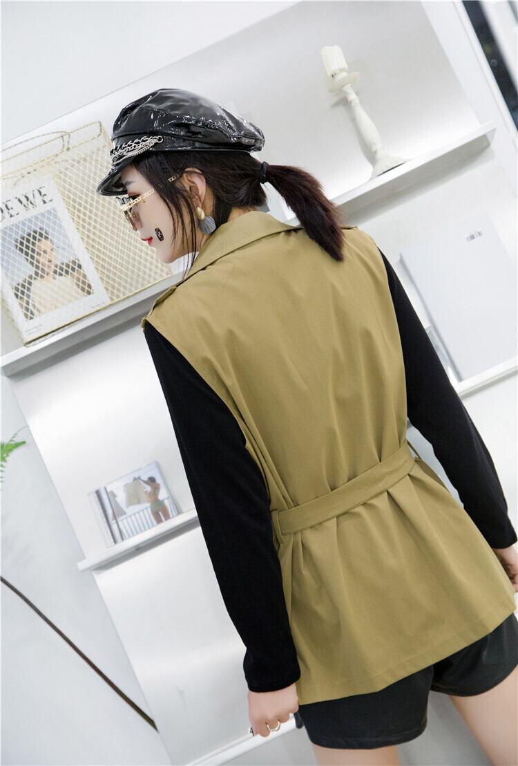 色:黒のツーピース,ブラックTカーキベストツーピーススーツ