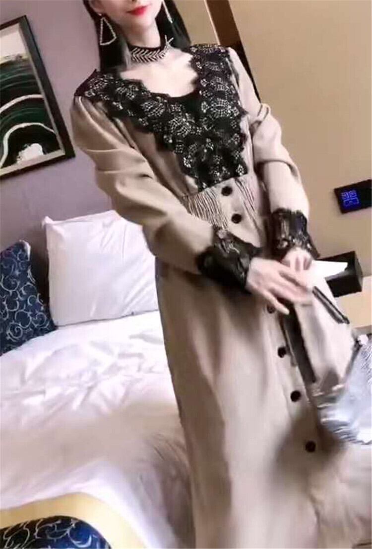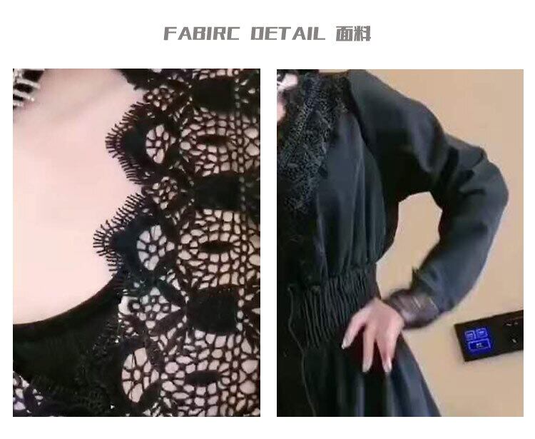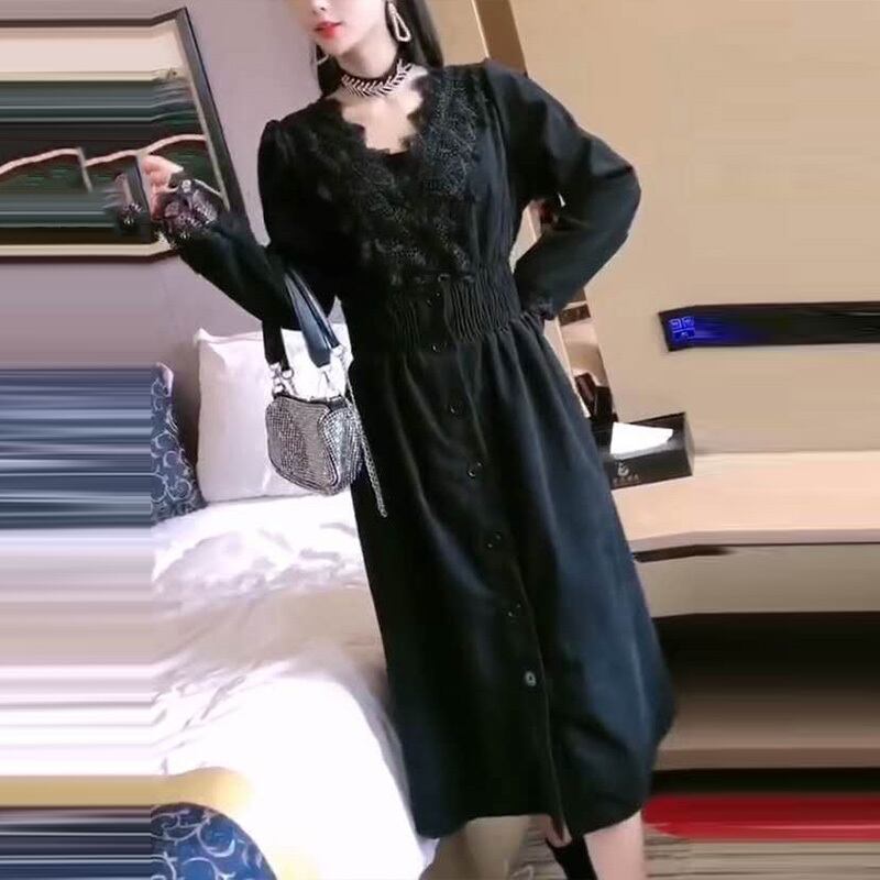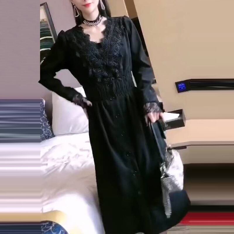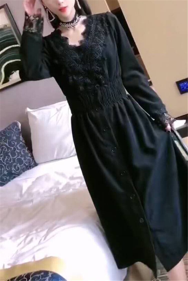 プラスサイズのレースのドレス女性2020年秋新しいファットmmウエストファッションスリム長袖Vネック気質女性のスカート ミックスインファッション59272461455