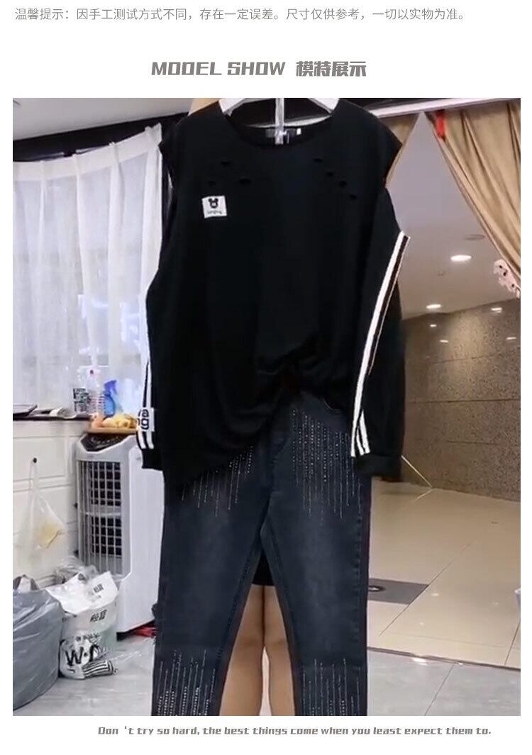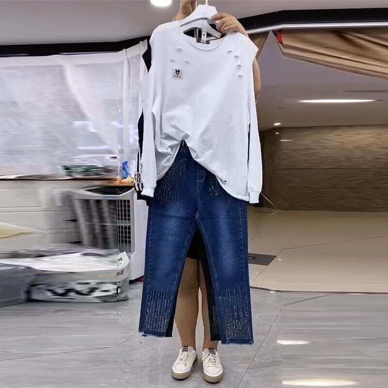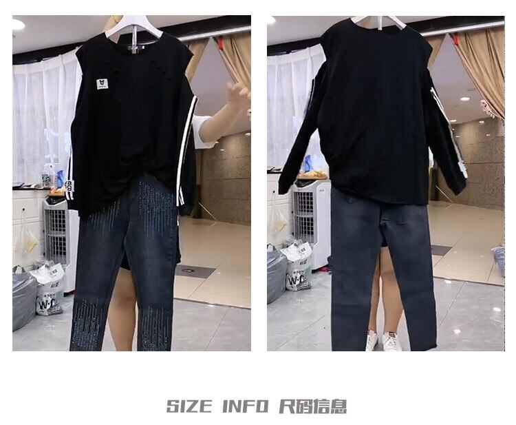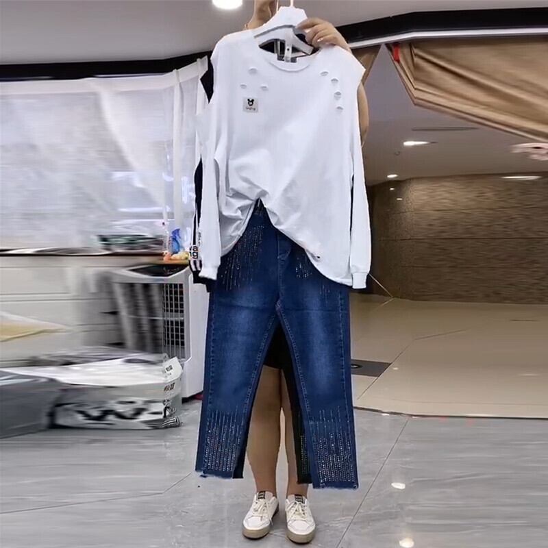 ラージサイズのストラップレス漫画長袖トップ2020秋の新しいファットmmルーズで薄いオールマッチTシャツレディースジーンズ ミックスインファッション78527874718