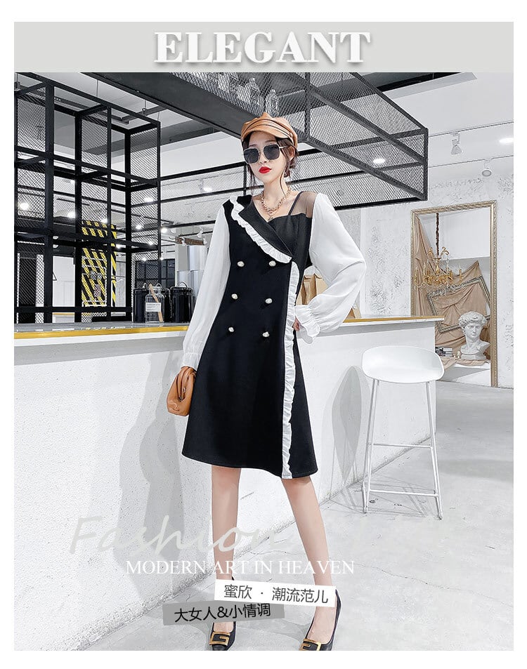 2020年秋新しいファットmm薄いフリルウエスタンスタイルの大型レディースドレス、年齢を減らし、肉を覆う糸 ミックスインファッション38918541346