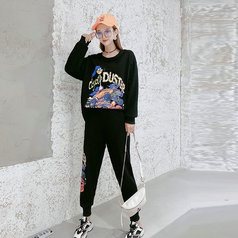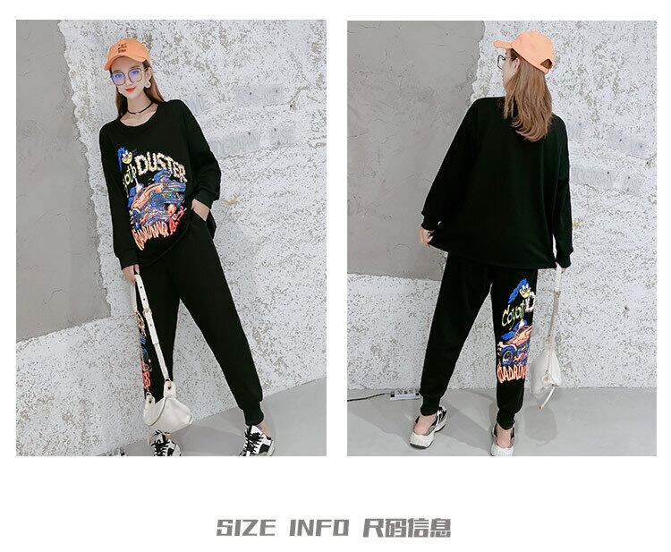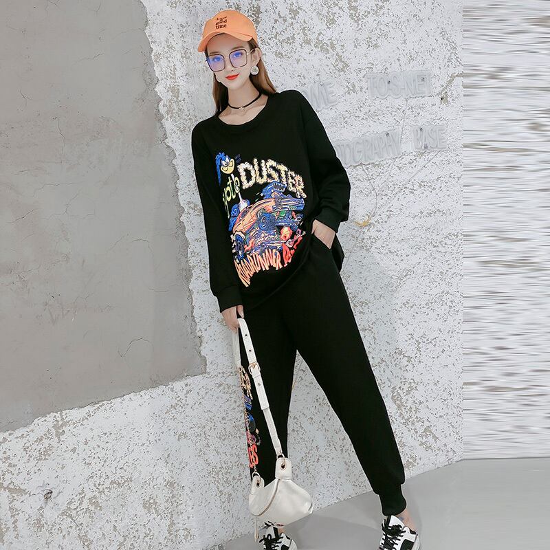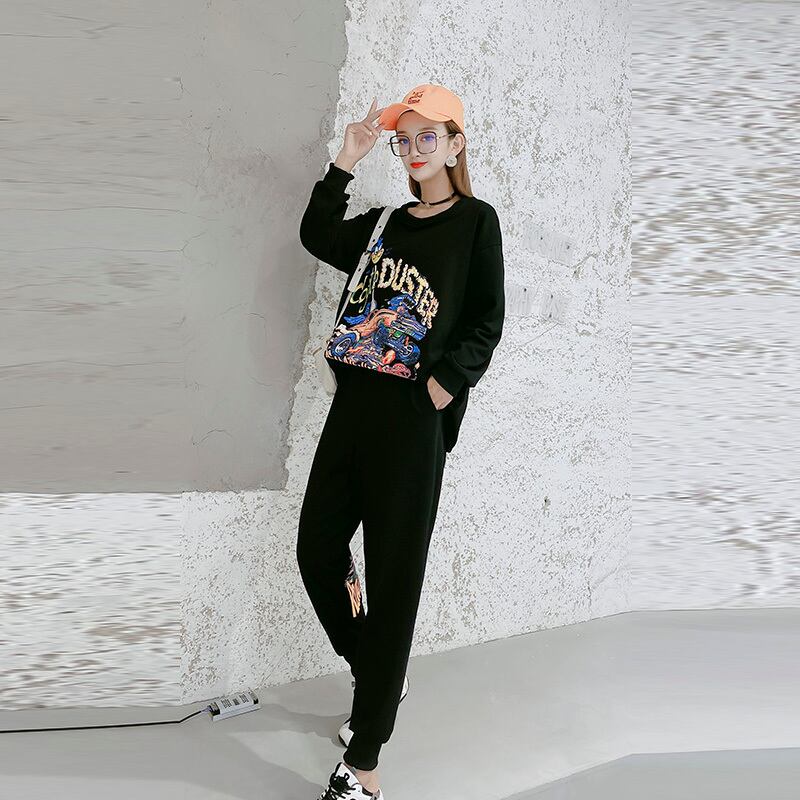 プラスサイズのレディース秋のツーピーススーツ2020ニューレターTシャツ年齢を減らしてスリムにするウエスタンスタイルのワイドレッグパンツスーツ ミックスインファッション99206883188