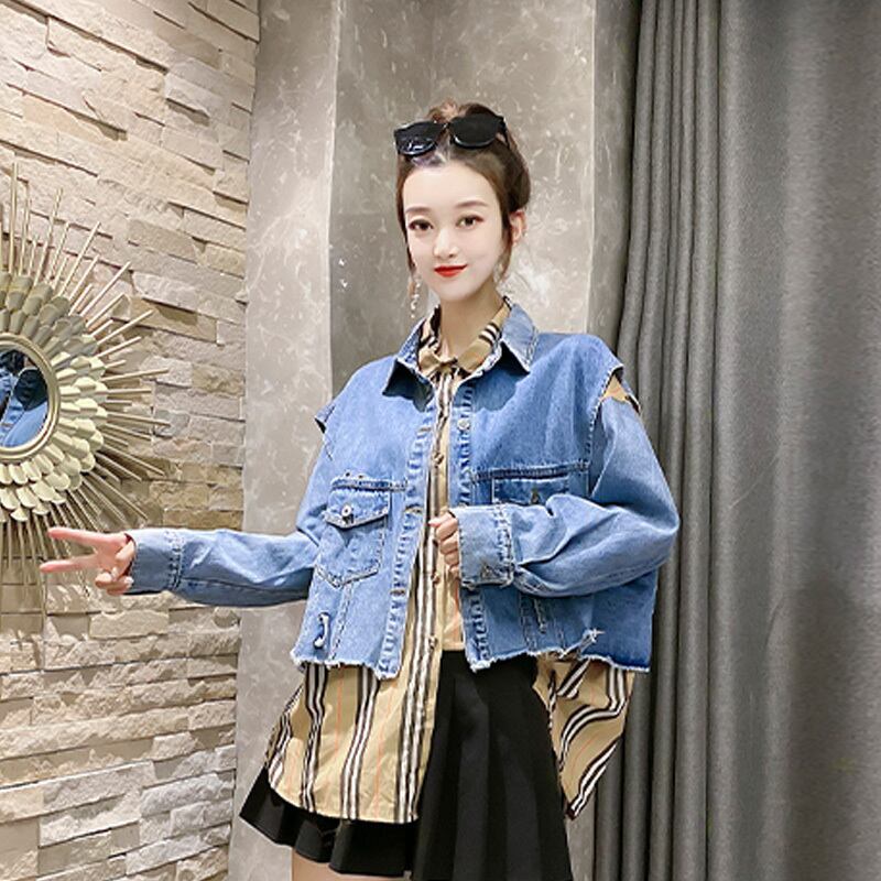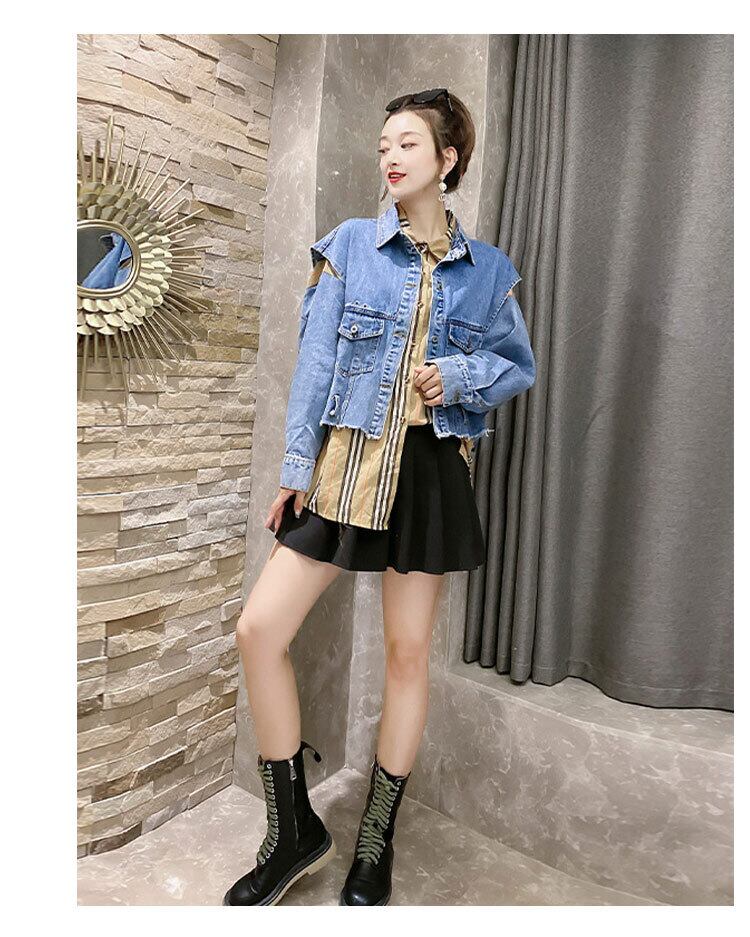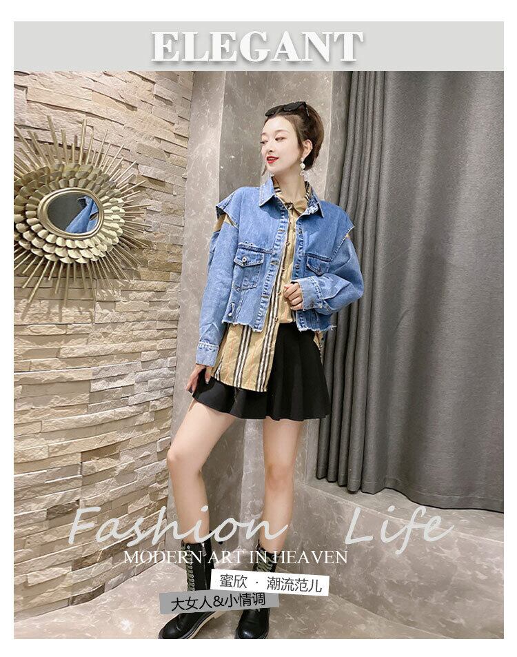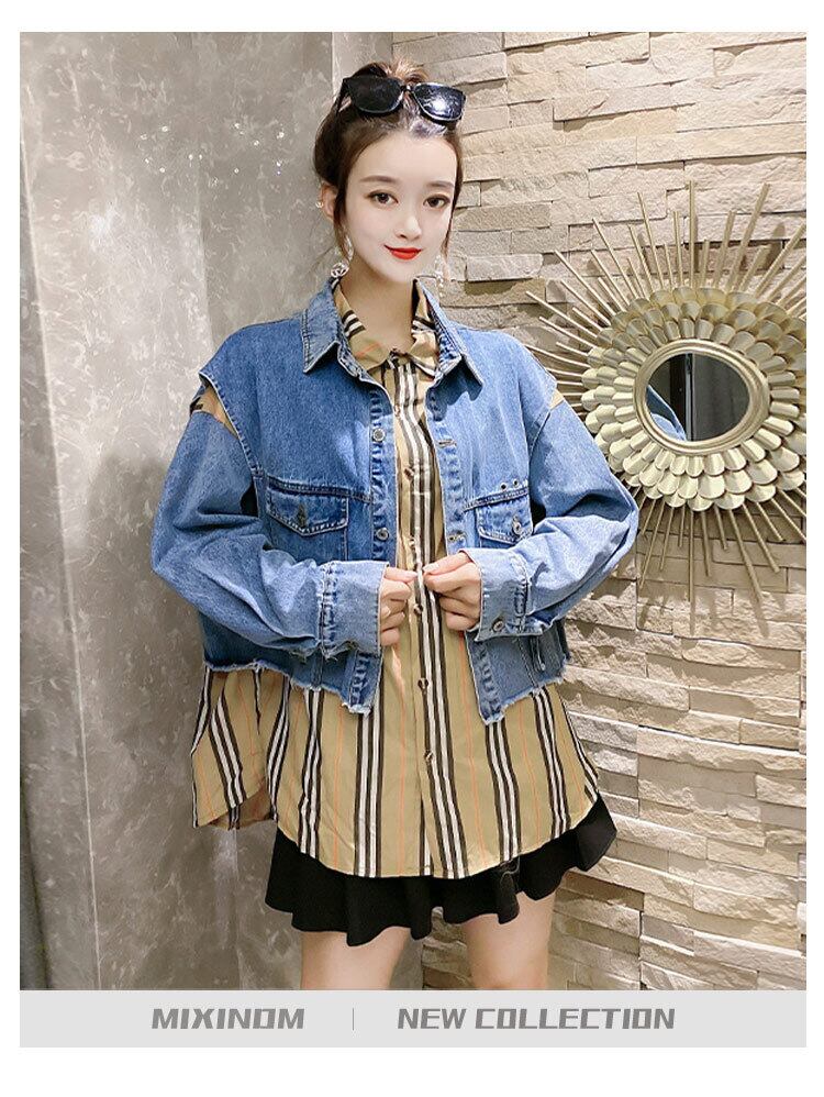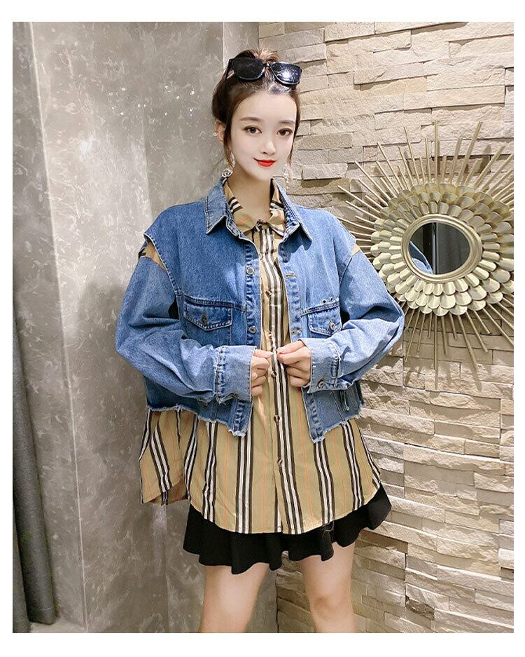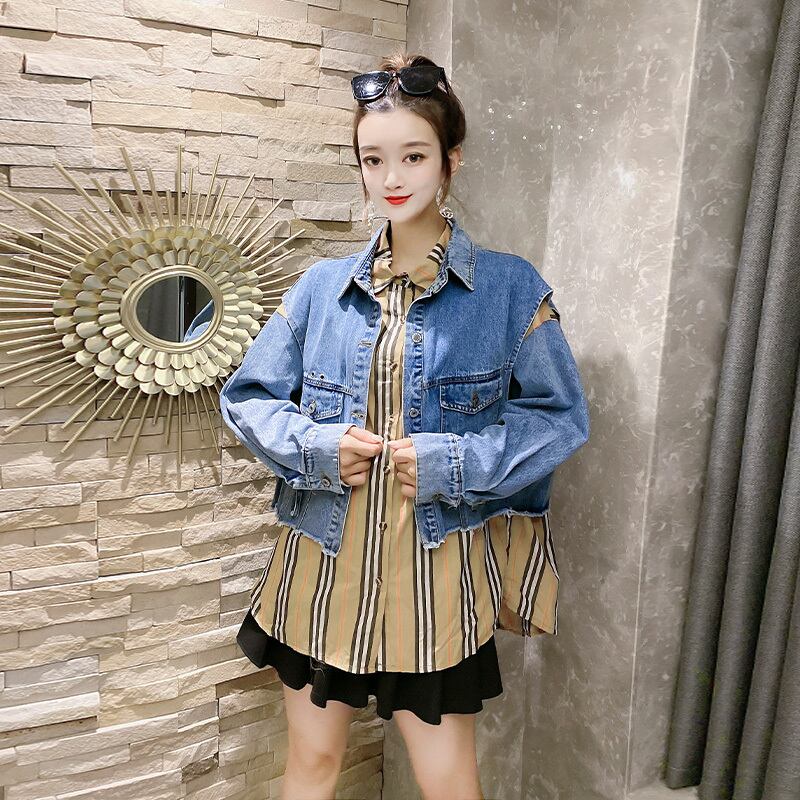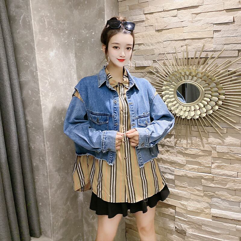 太った女性の秋の服200デニムジャケットツーピースシャツ特大プラス太った260kg太ったmmスリムシャツ ミックスインファッション51172967032