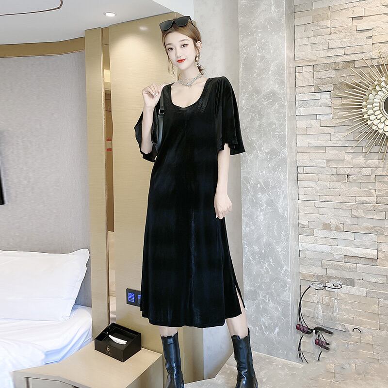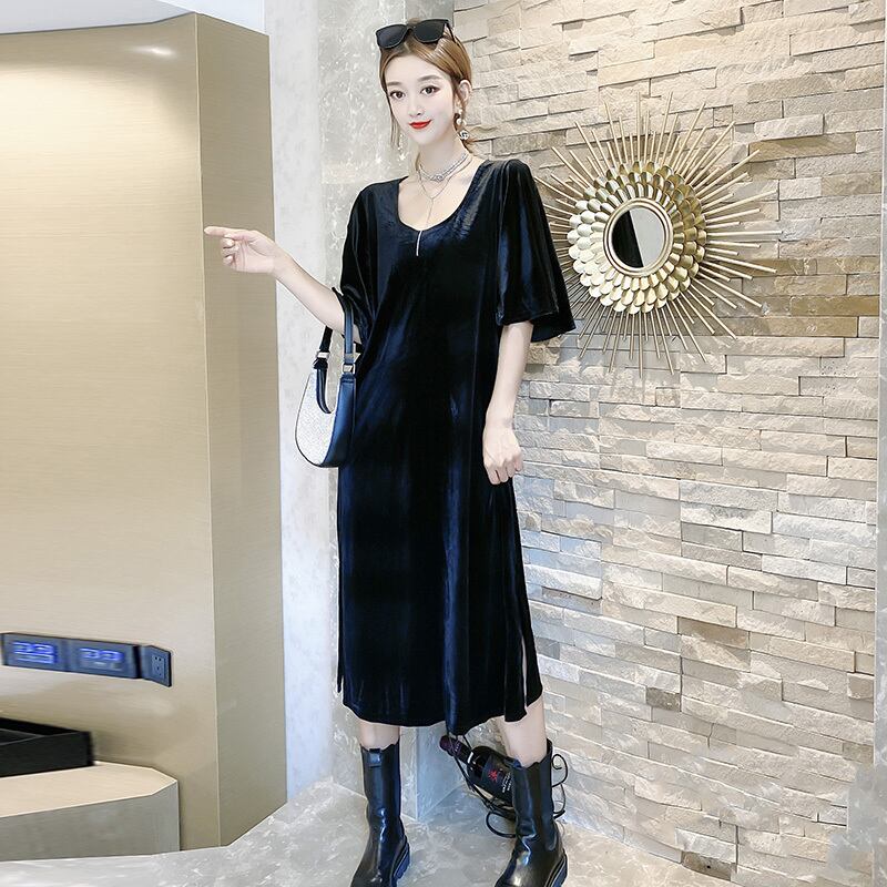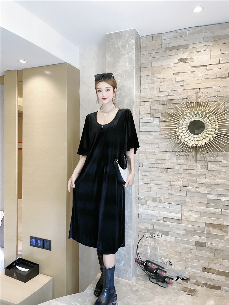 ゆったりとした薄手の気質2020新夏秋ルーズラージサイズブラックファッションとエレガントなレディーススカート ミックスインファッション75836470384