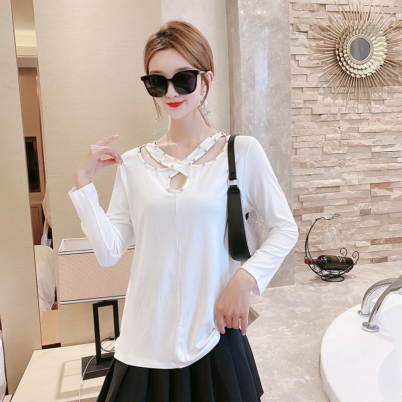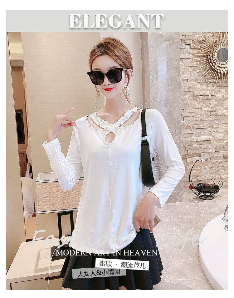 Mixin秋新作中空ボトミングシャツ長袖TシャツプラスサイズレディースファットMMショートワイルドトップトレンド ミックスインファッション67839095957