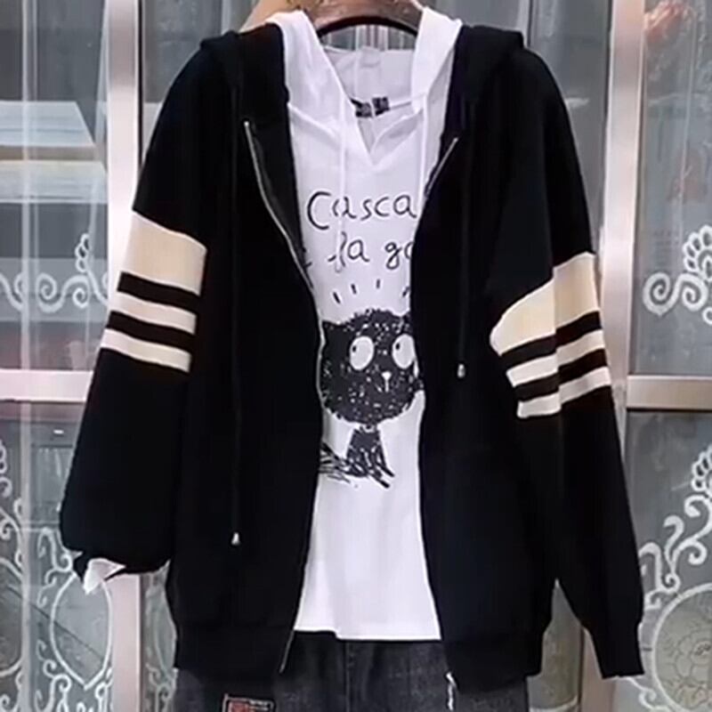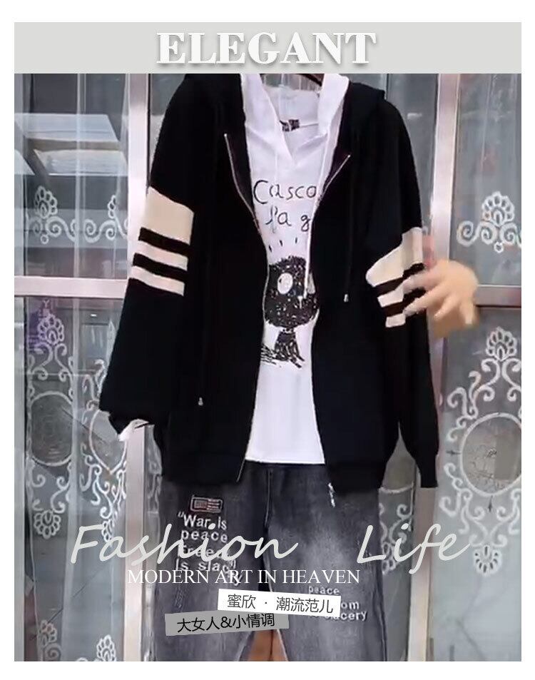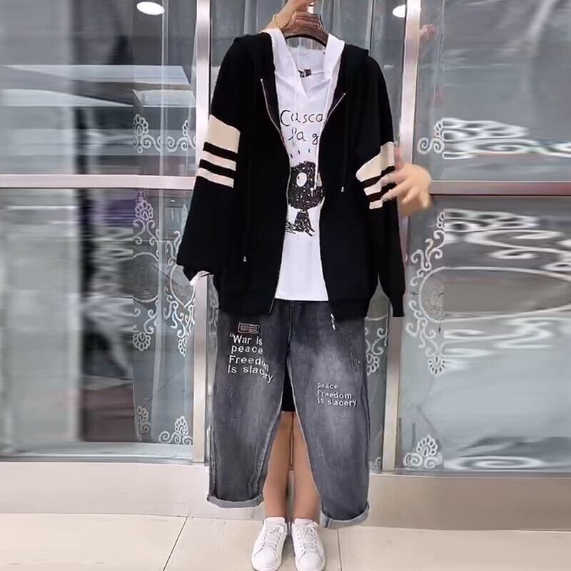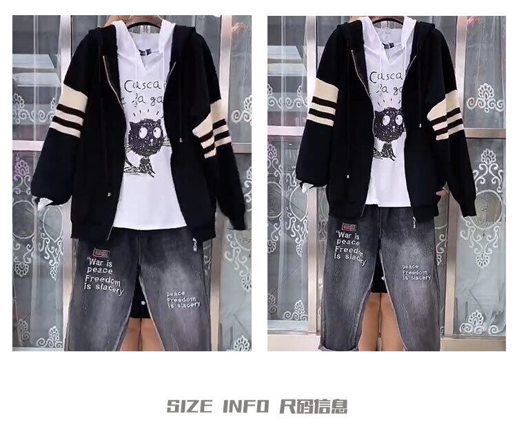 2020年秋ニュースタイルプラスサイズファットmmフード付きジャケット女性ウエスタンスタイル漫画Tシャツ200ポンド薄いジーンズファッション ミックスインファッション69533257111