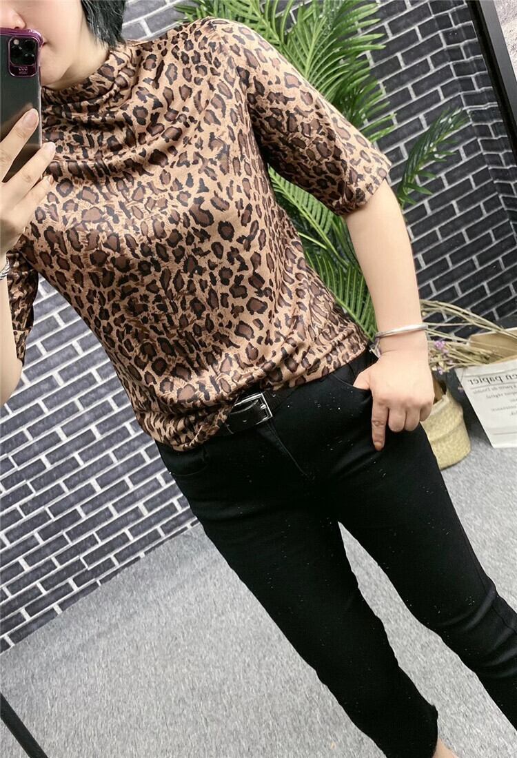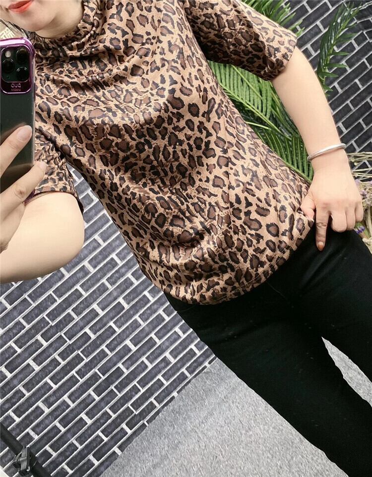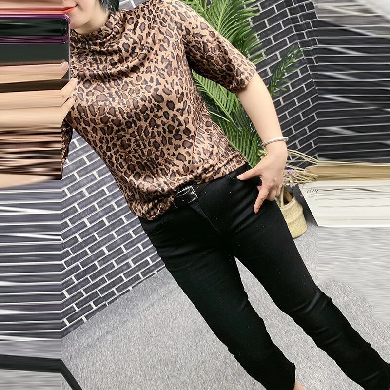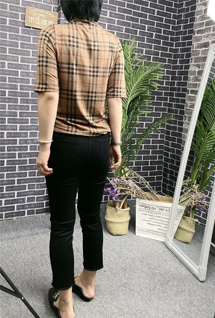 ラージサイズの女性用ハイネックチェック柄Tシャツルーズファットmm半袖ウエスタンスタイルボトミングシャツトップス女性ワイルド ミックスインファッション73235676171
