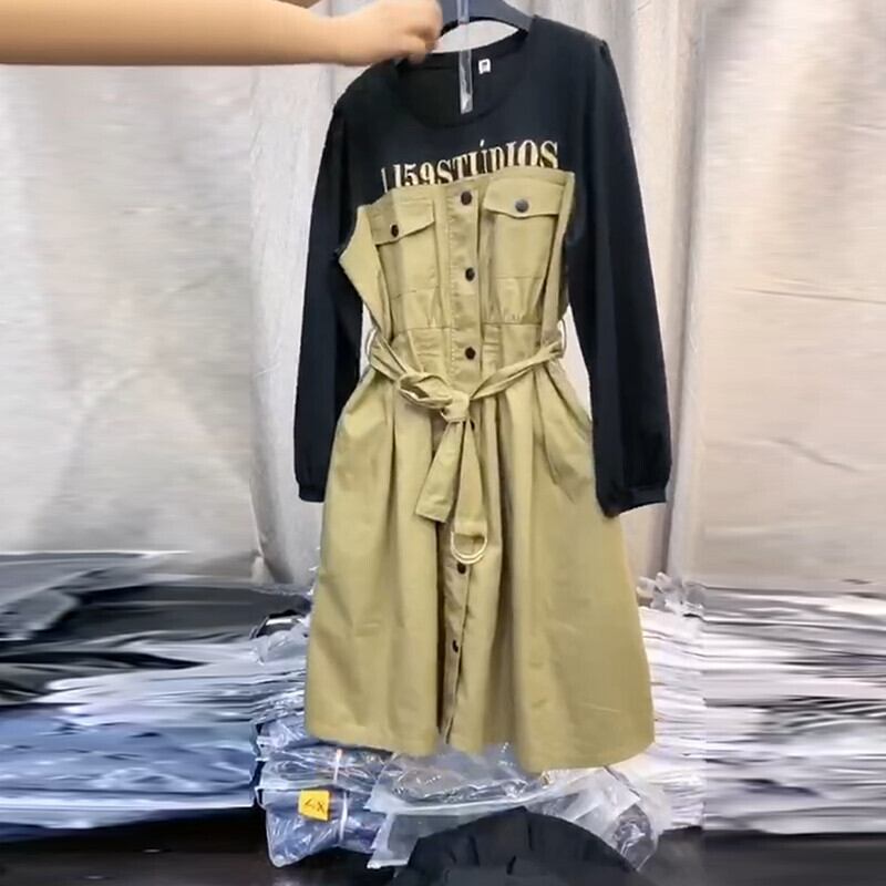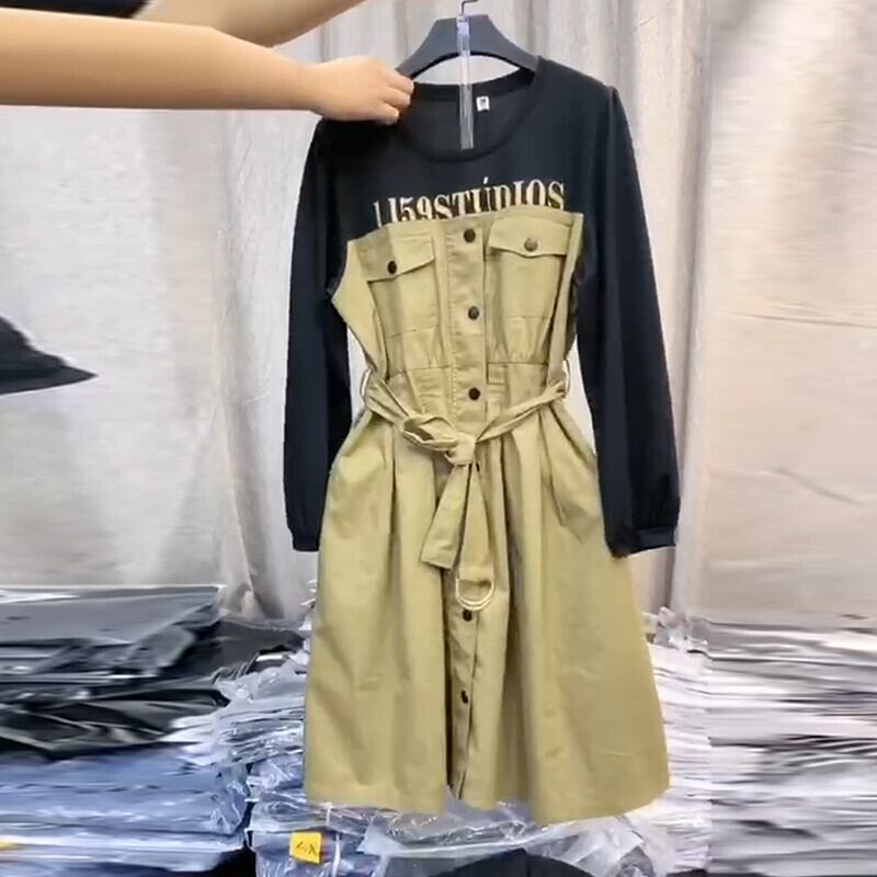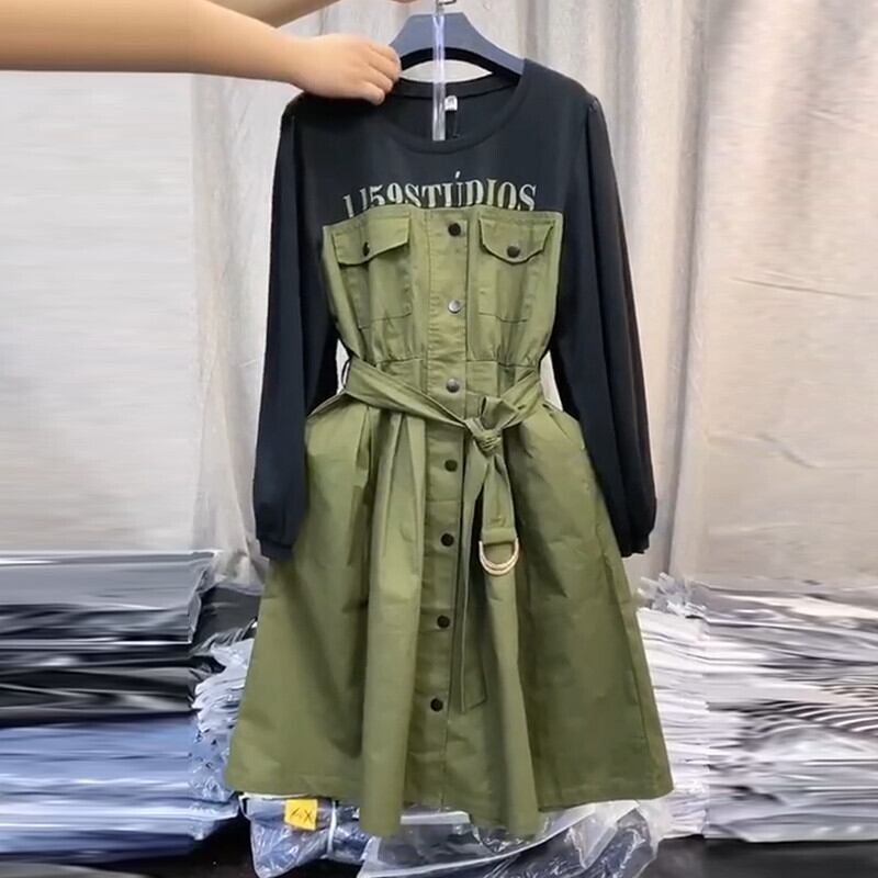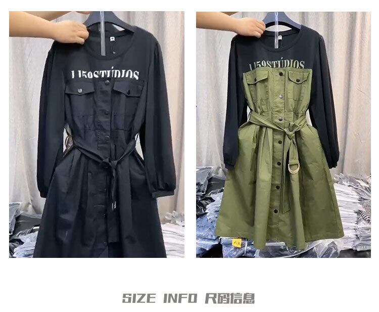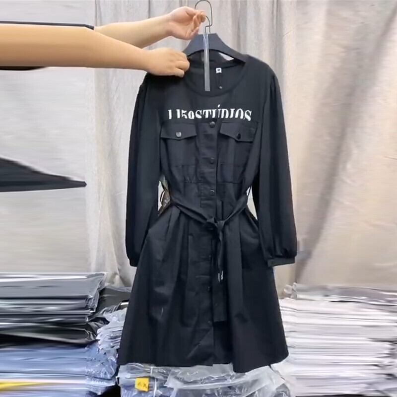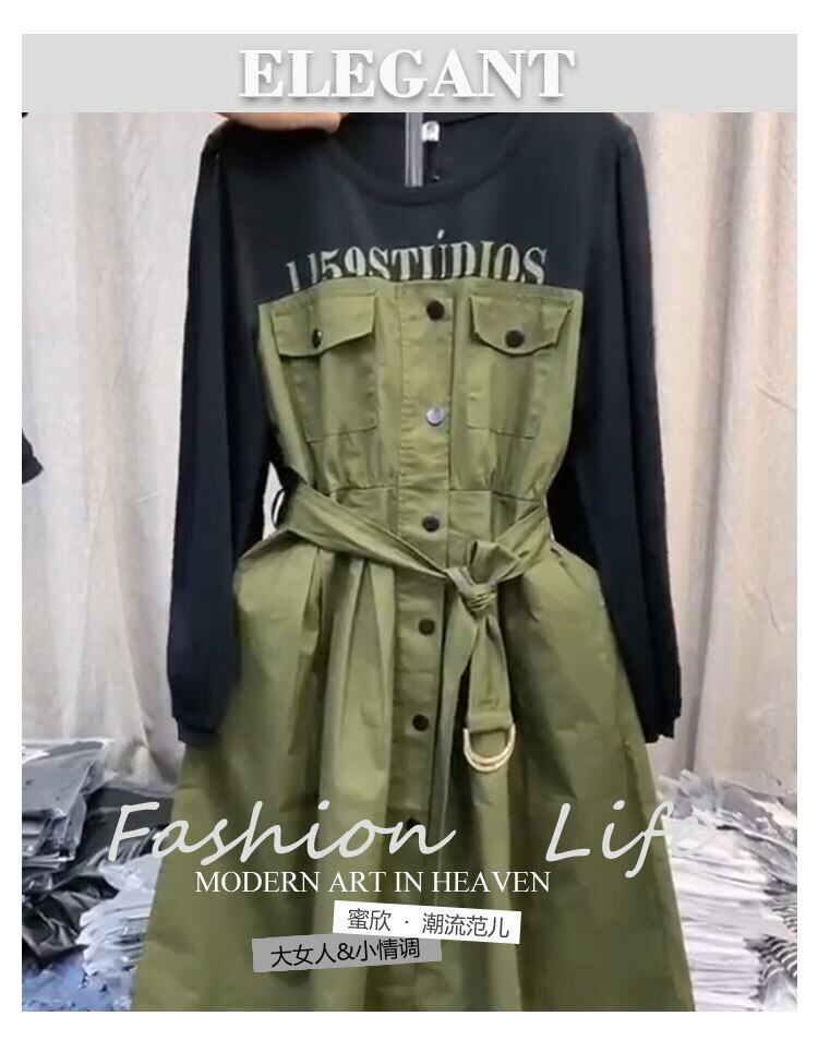 ラージサイズの女性用200kgファットMM秋のドレス、ラウンドネックのラウンドネックミドル丈のレタードレスは薄潮でした ミックスインファッション99215156733