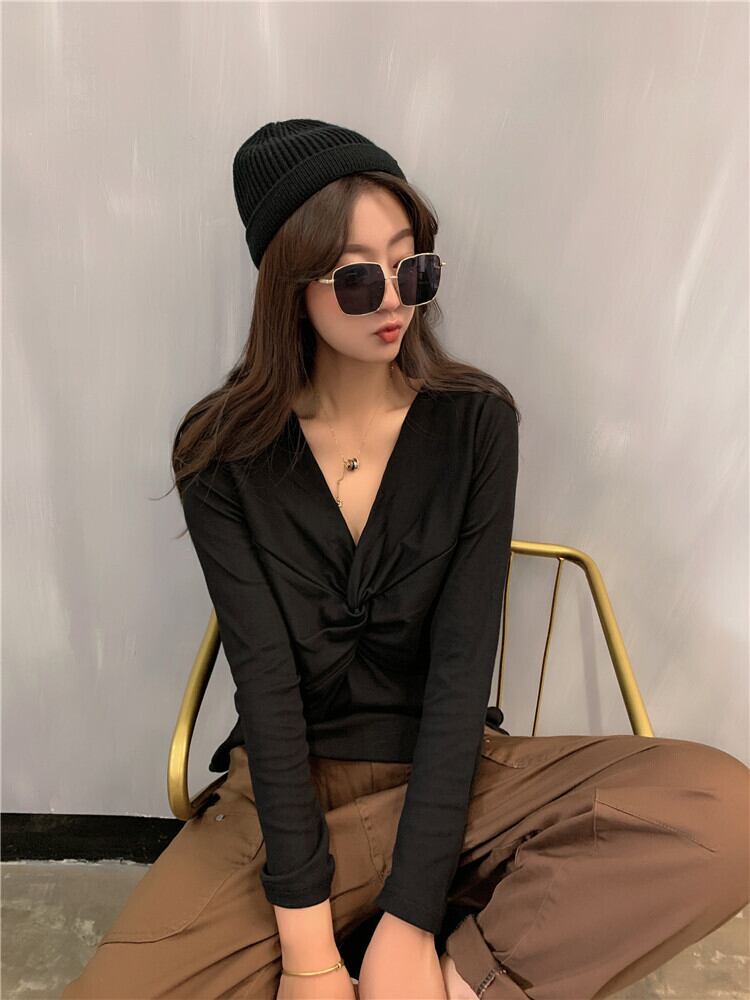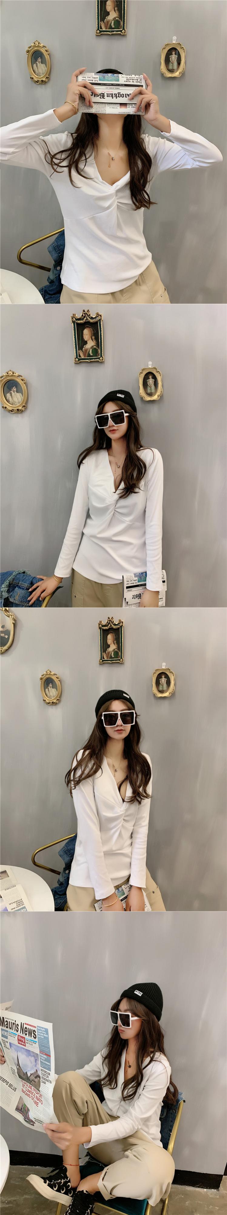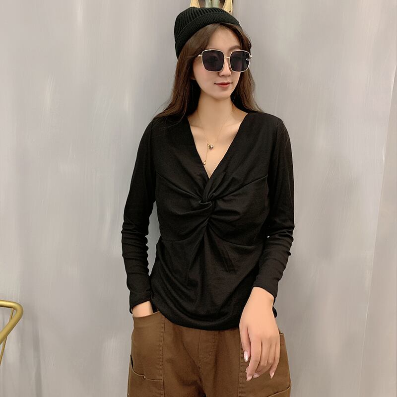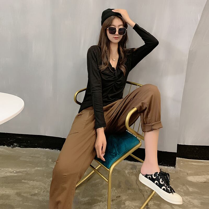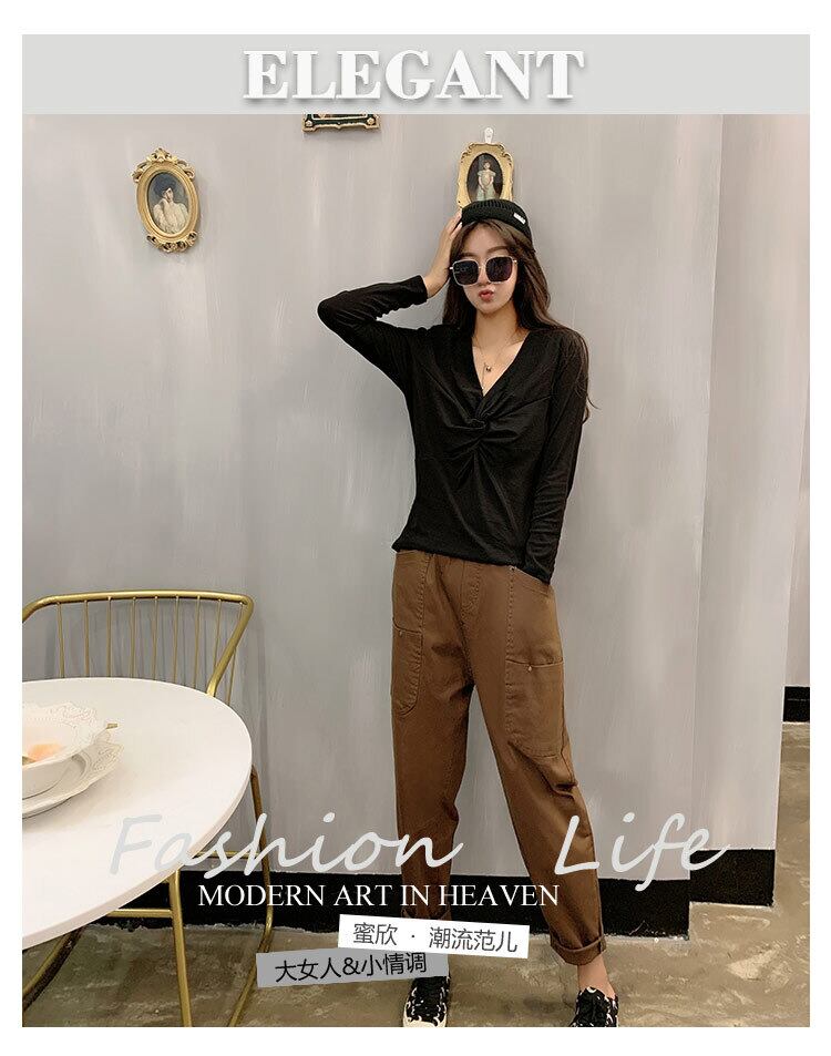 プラスサイズの女性の秋の太った姉妹ファッションVネックの女性のルーズで薄い洋風Tシャツファッショナブルなトップスカジュアルな女性のパンツのトレンド ミックスインファッション41684310049