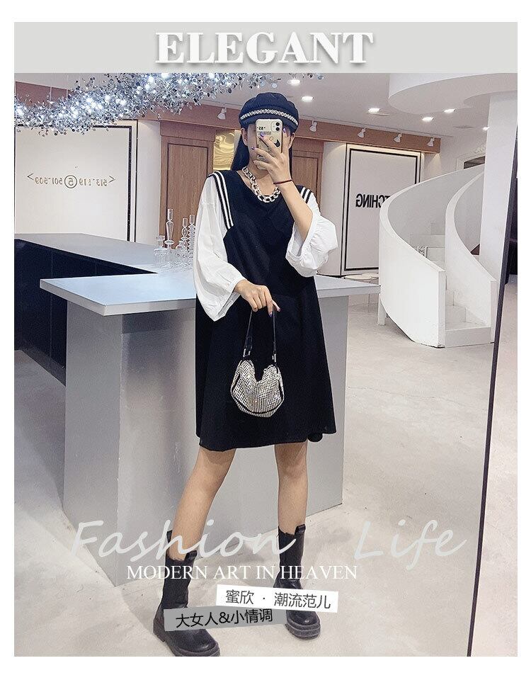 2020年の新しい秋のファットmmカラーマッチングドレスは、腹の痩身ドレスをカバーし、プラスサイズの婦人服、ファットウェア秋の潮 ミックスインファッション69428970025