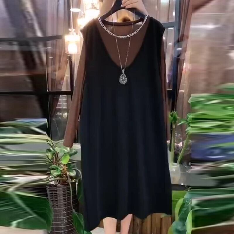 ファットプラスサイズ婦人服ファットシスター秋新ラウンドネックTシャツボトミングシャツウエスタンスタイルスリミングベストドレス ミックスインファッション39338508833