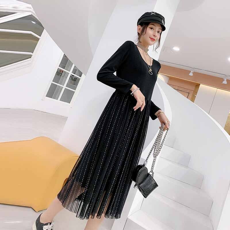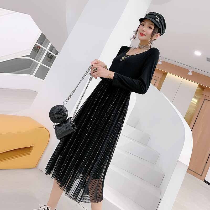 スタンダードスリムシフォンドレス ブラックスカート レトロ 大きめサイズ 大人ガーリー スウィート キュート カジュアル シルク ミックスインファッション27860692726