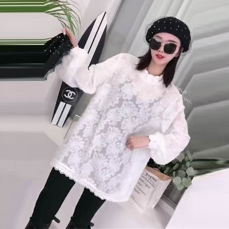 オータムレーストップス Tシャツ ロング 大きめサイズ 秋物 ミックスインファッション24786730784