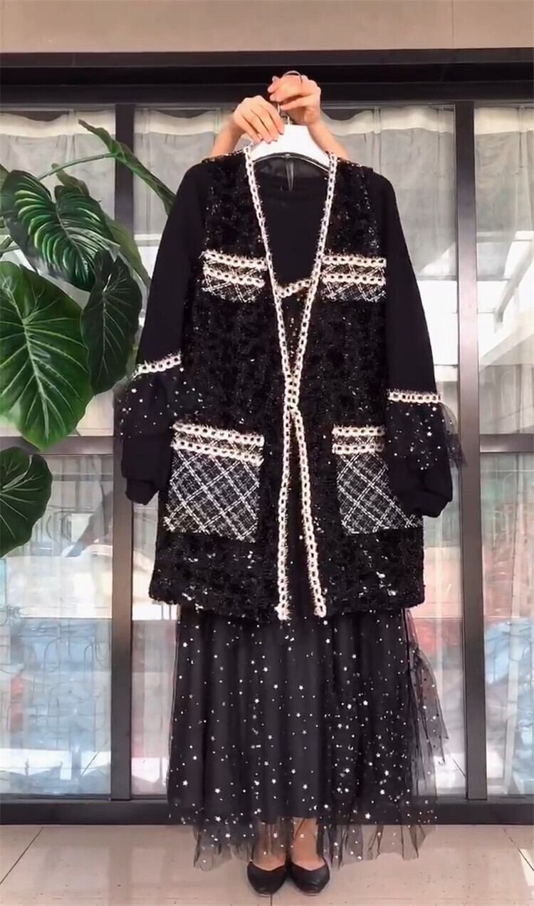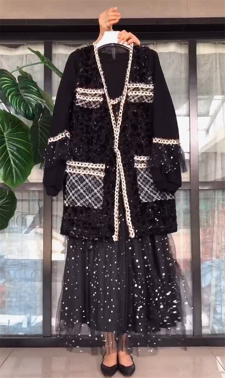 色:黒のベスト,ブラックT,黒スカート,トップ+スカートスーツ