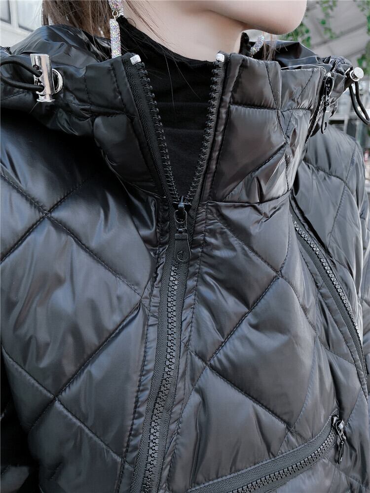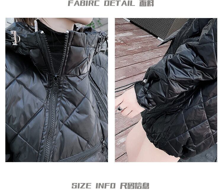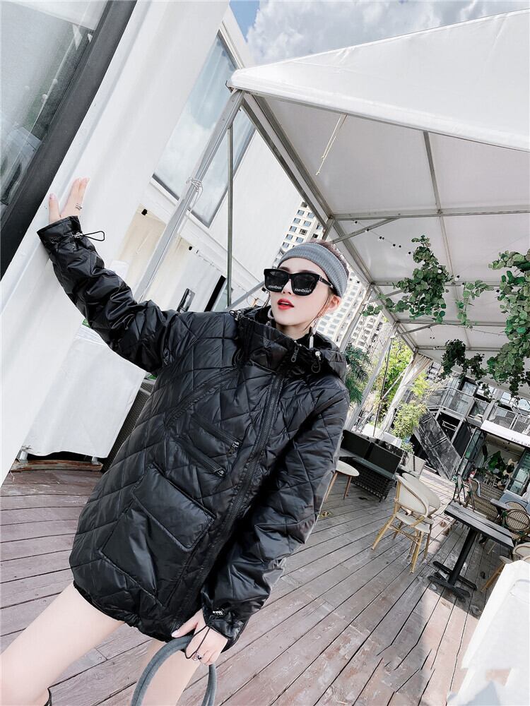 ウィンターフードブラックスリムジャケット ルーズ コットン 大きめサイズ 冬物 ミックスインファッション39457188477