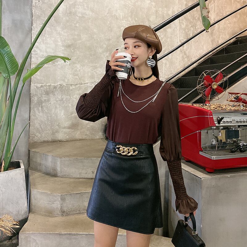 オータムウィンタールーズ薄手Tシャツ トップス レザースカート 大きめサイズ 秋物 冬物 ミックスインファッション26094280102