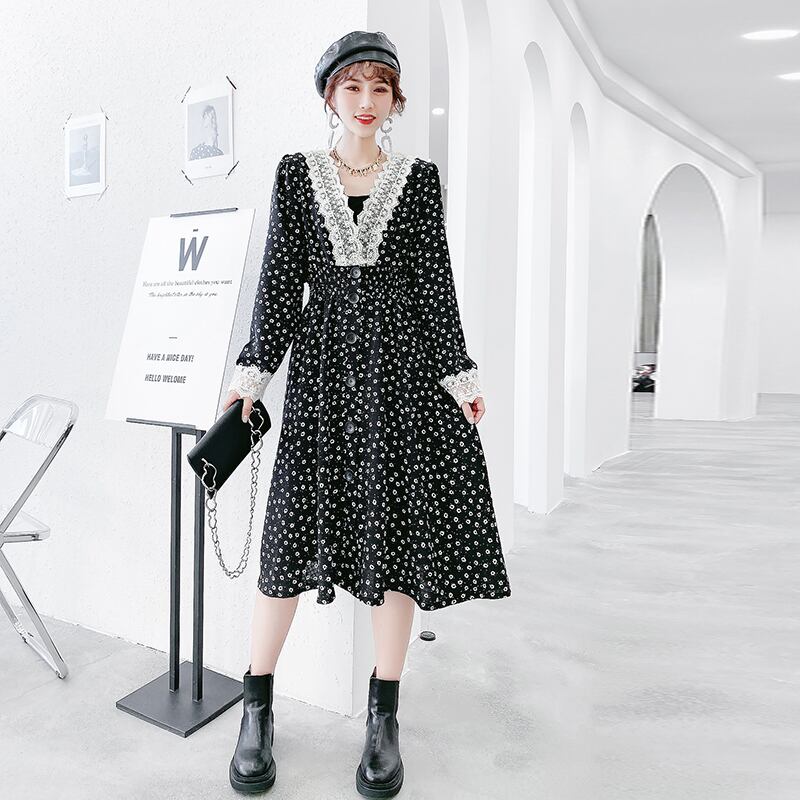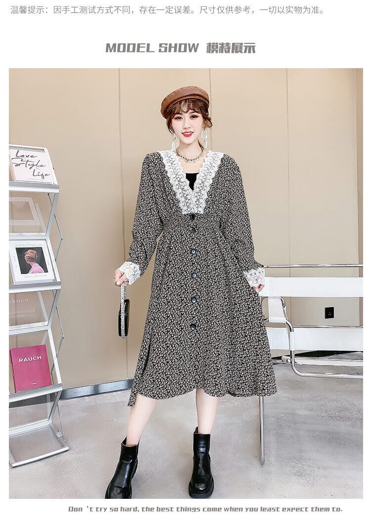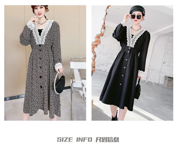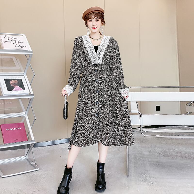 オータムドレス ウェストレースVネックスカート 大きめサイズ 秋物 ミックスインファッション68303609909