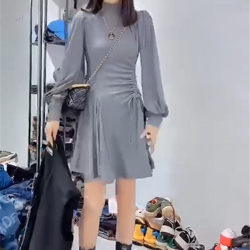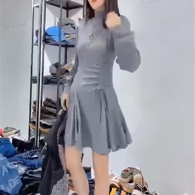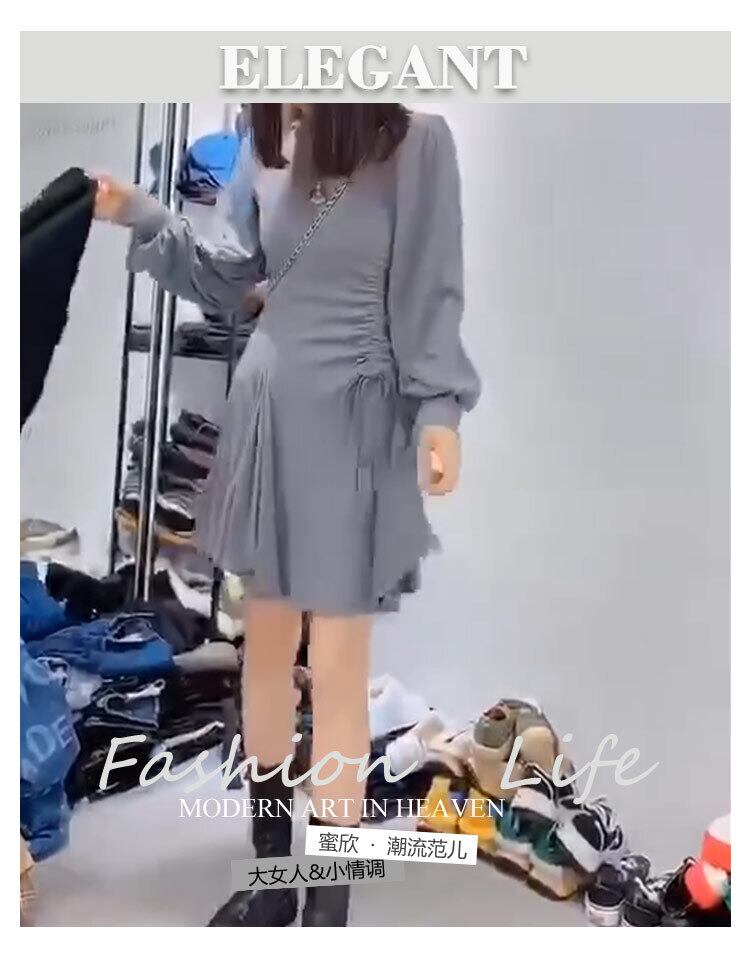 ラウンドネックスカート オータムドレス ロング 長袖 大きめサイズ 秋物 Oネック ミックスインファッション20448657701