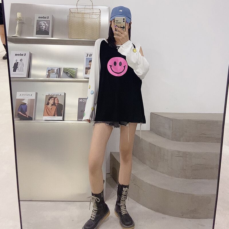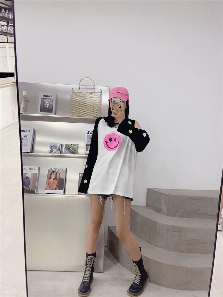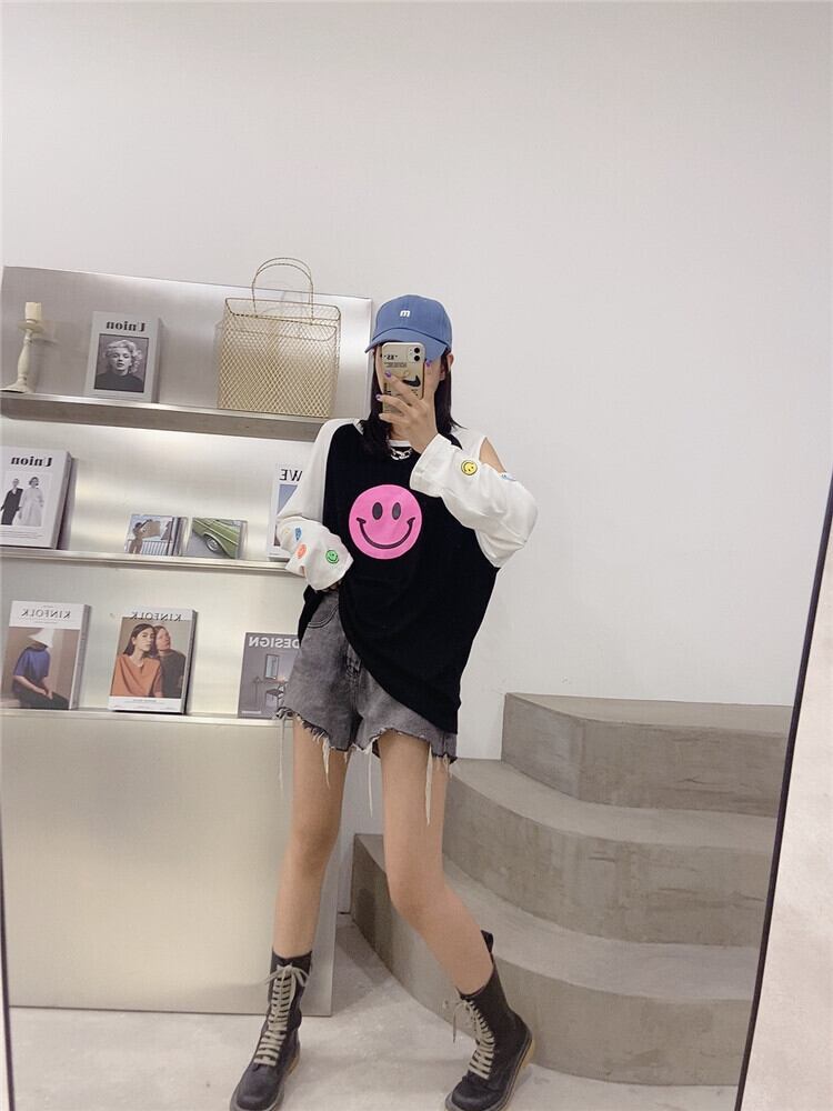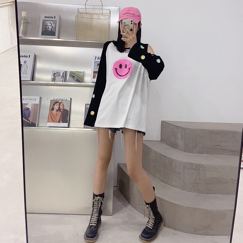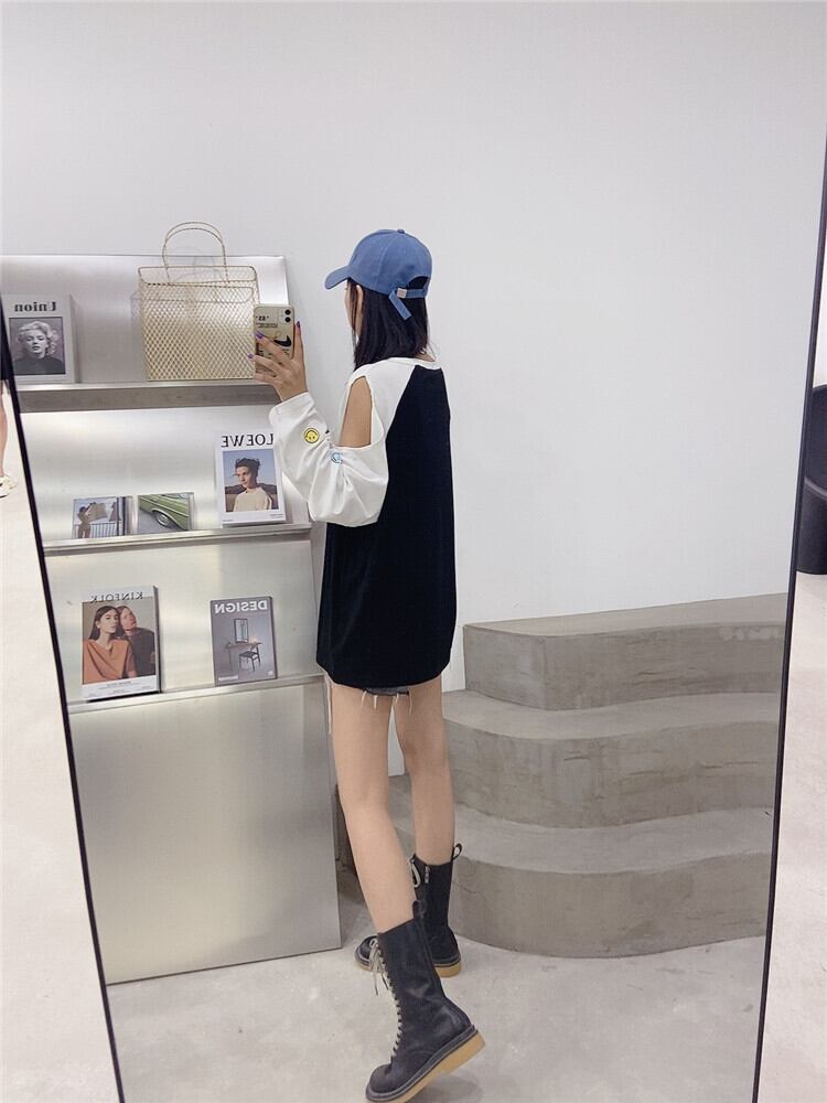 Tシャツ ルーズ薄手ブラウス ロング 大きめサイズ オフショルダー ミックスインファッション63196972785